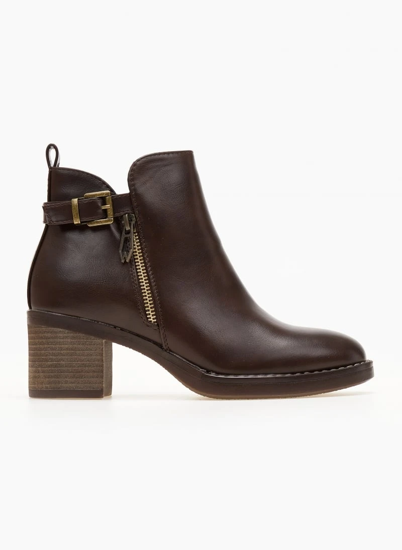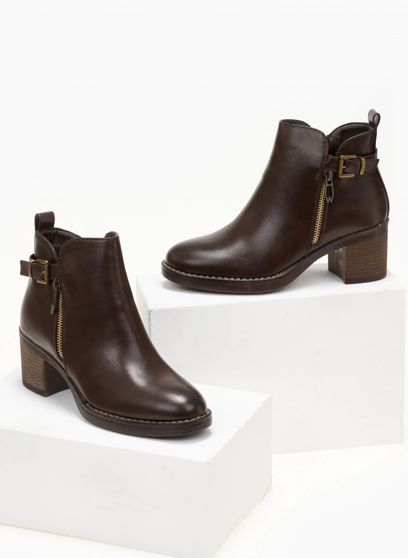 The Fashion Project Μποτάκια αστραγάλου με εξωτερικό φερμουάρ – Καφέ