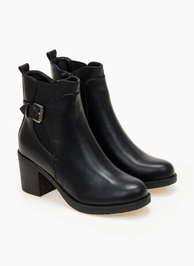 All day μποτάκια με τετράγωνο τακούνι και ζωνάκι. Έχουν λάστιχο στο πλάι και στο εσωτερικό λειτουργικό φερμουάρ.