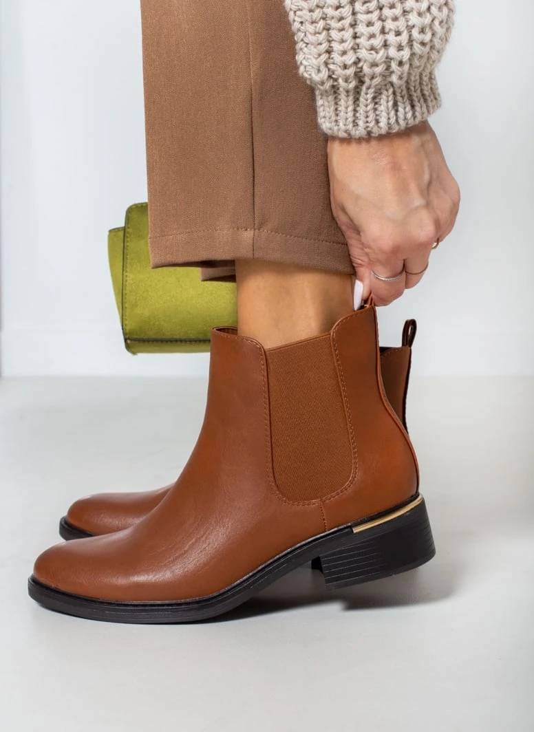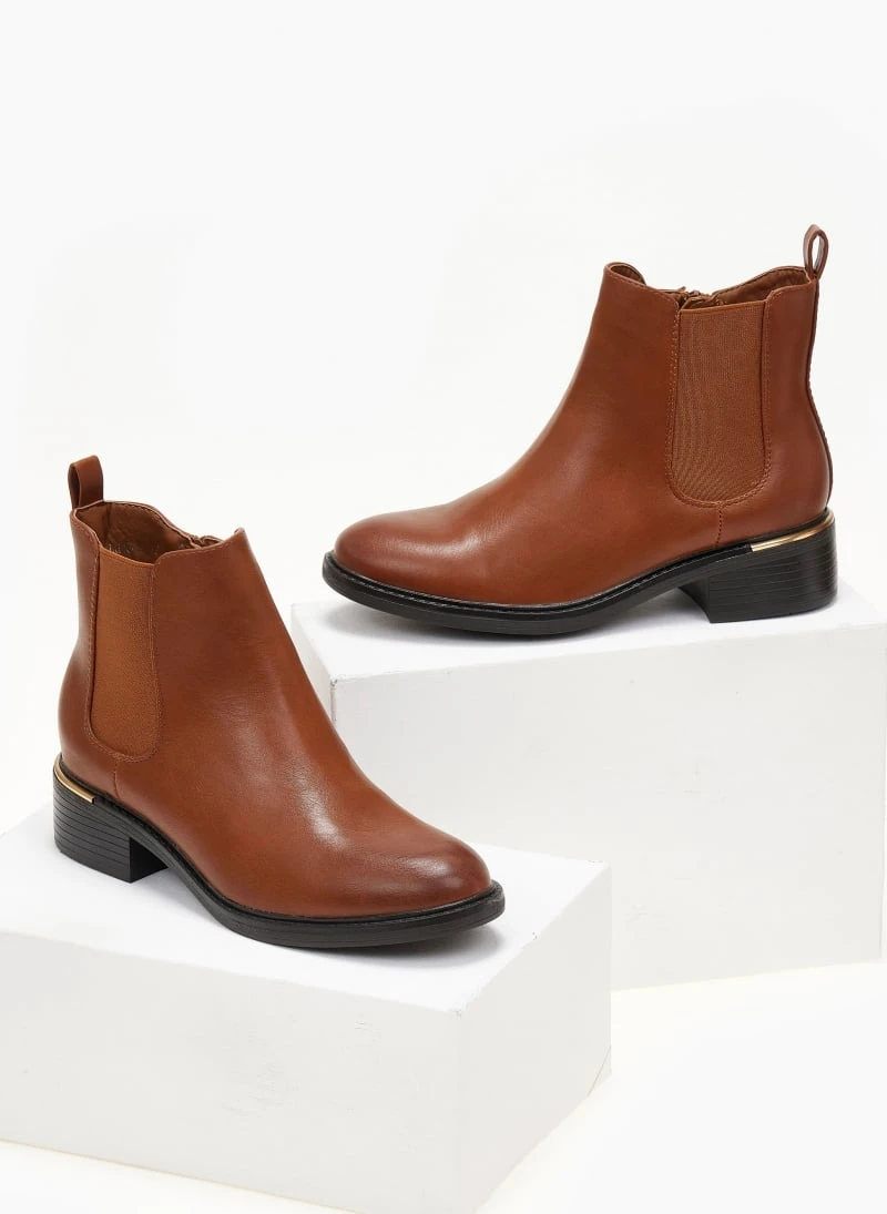Μποτάκαι αστραγάλου σε στρογγυλή γραμμή. Έχουν λάστιχο στην εξωτερική τους πλευρά. Μεταλλική λεπτομέρεια στο τακούνι.
