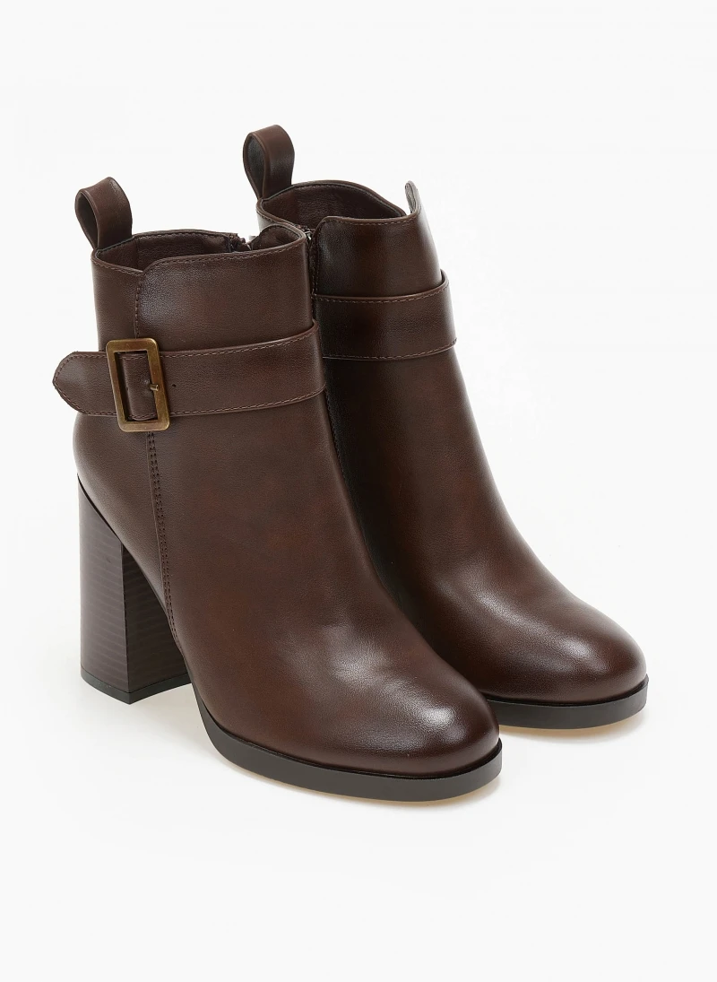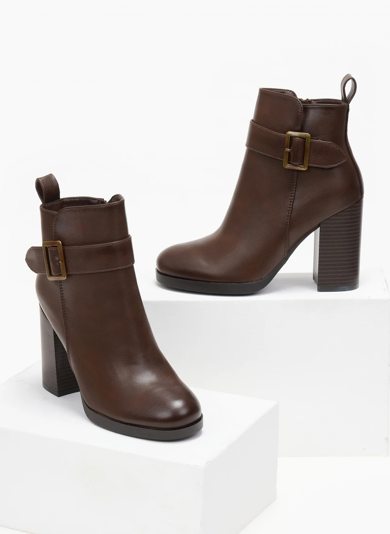 The Fashion Project Μποτάκια αστραγάλου με ζωνάκι – Καφέ