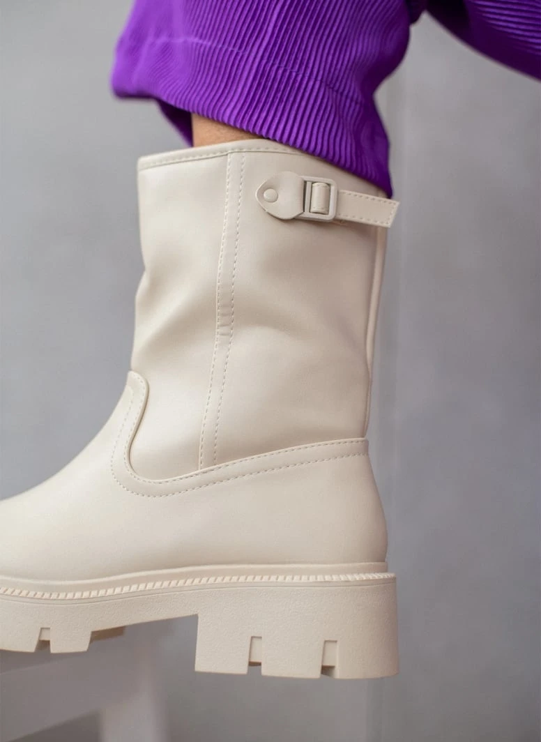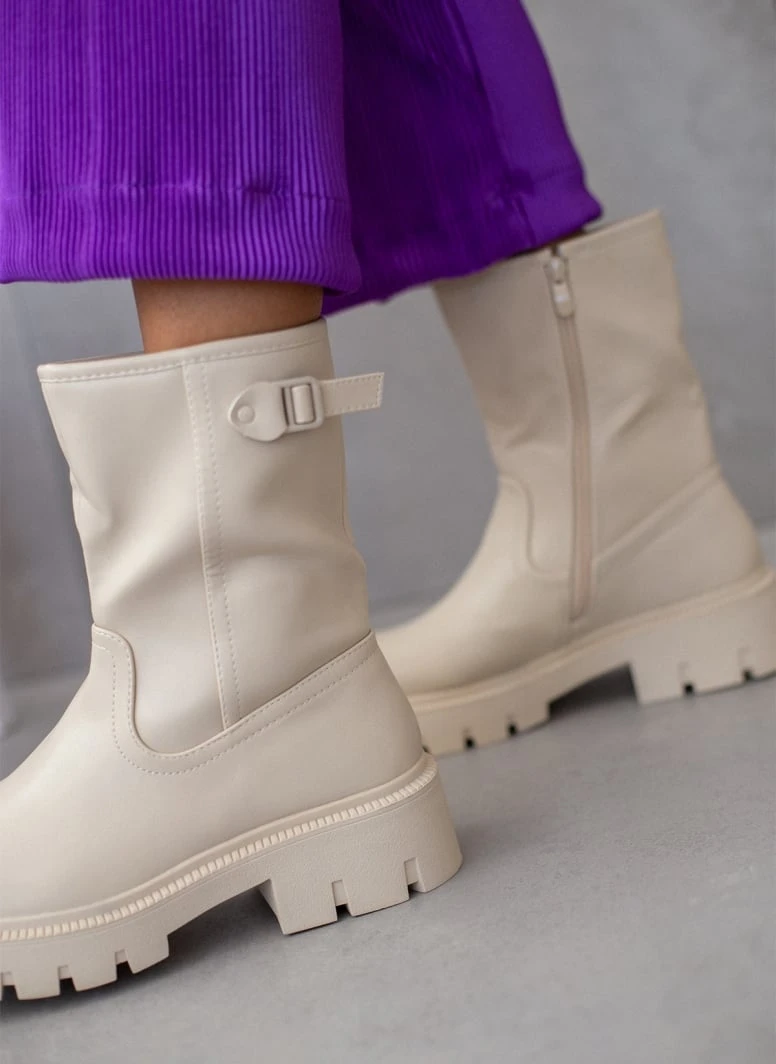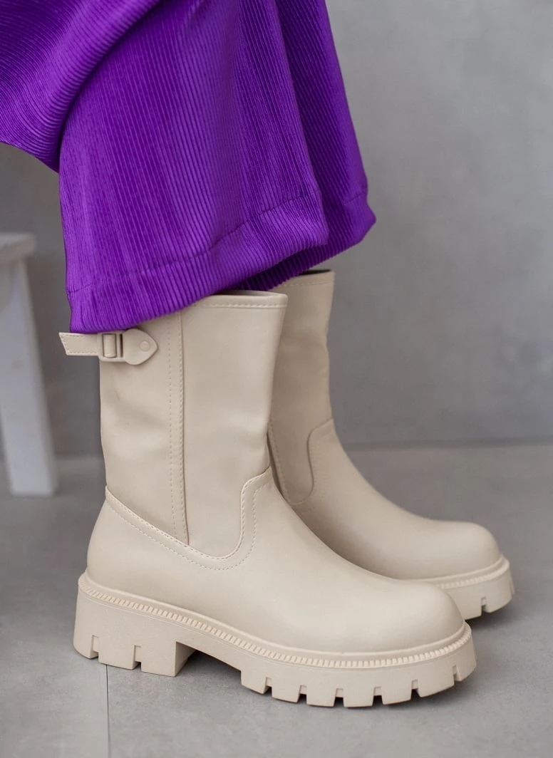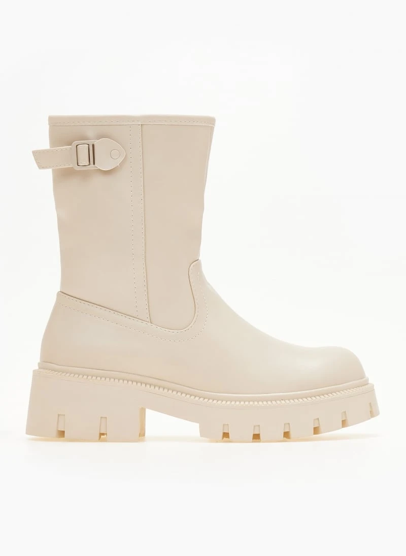 The Fashion Project Μποτάκια Biker με ψηλή τρακτερωτή σόλα – Μπεζ