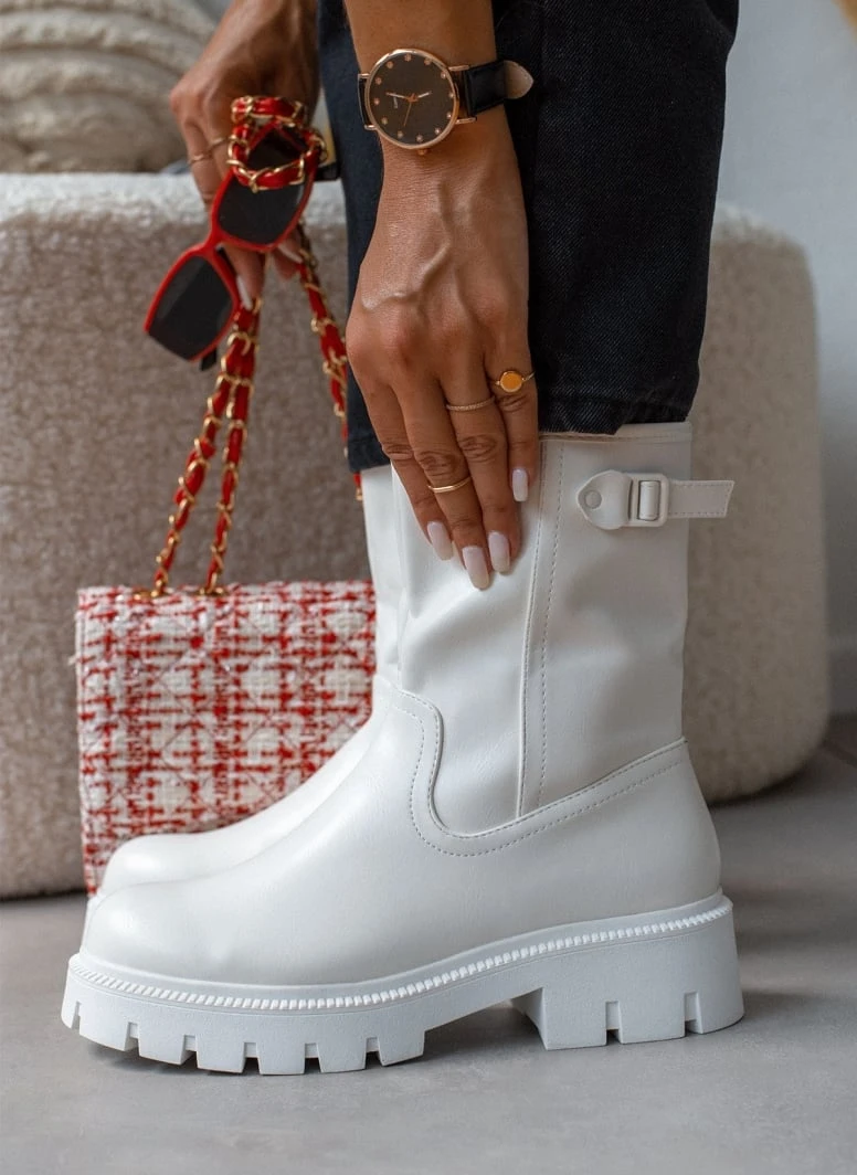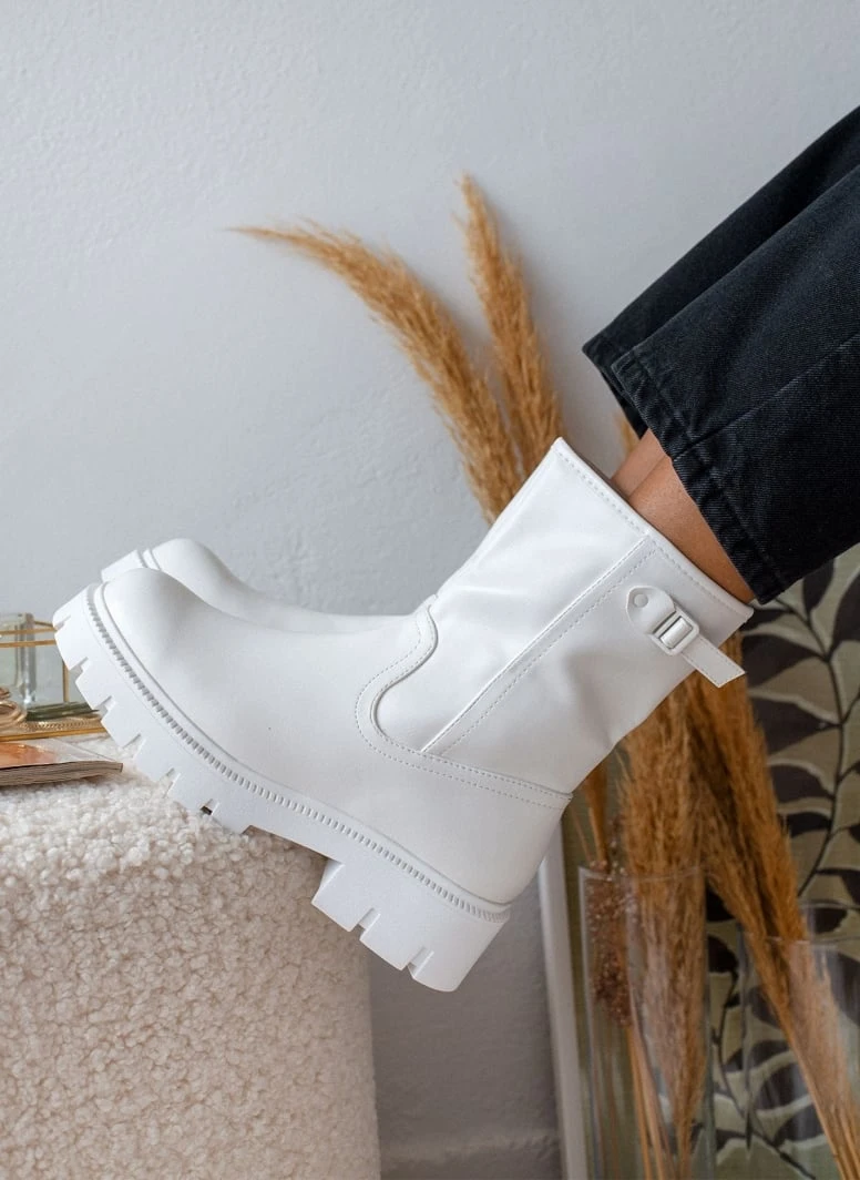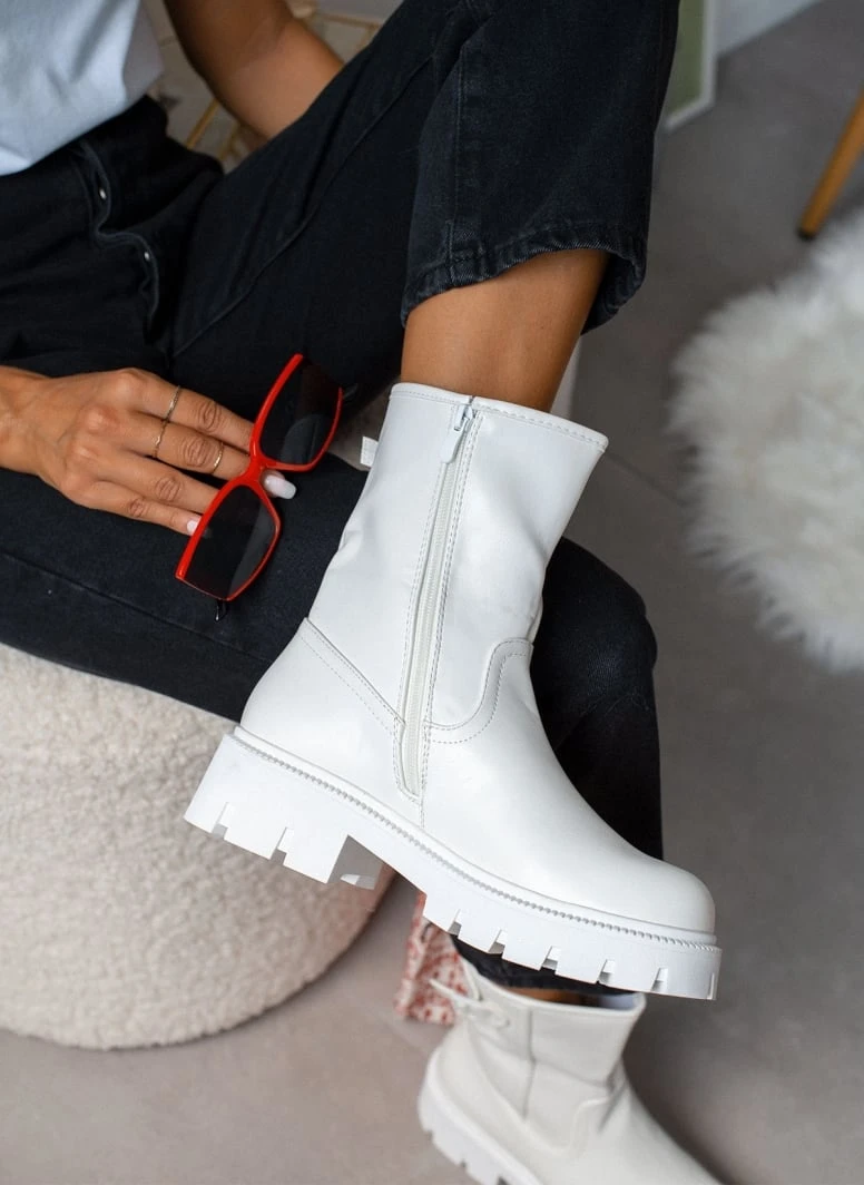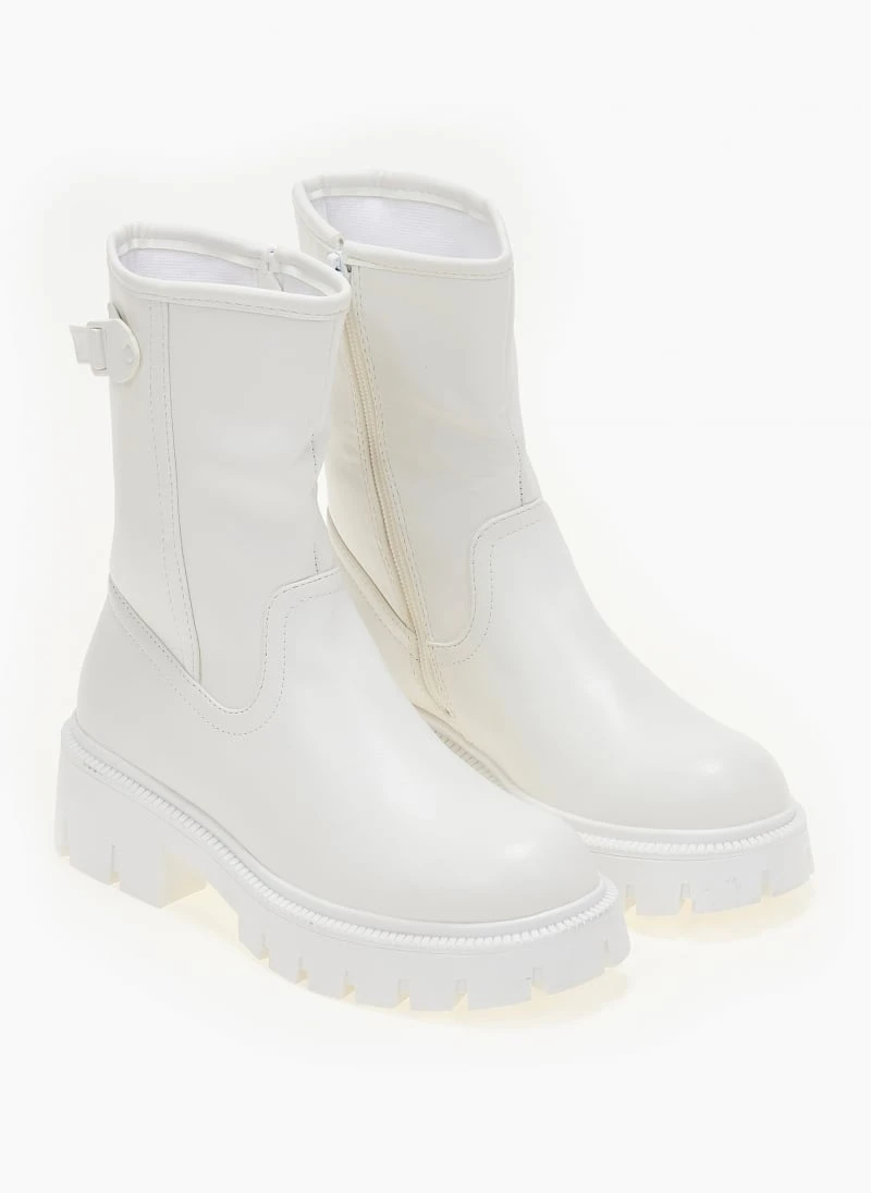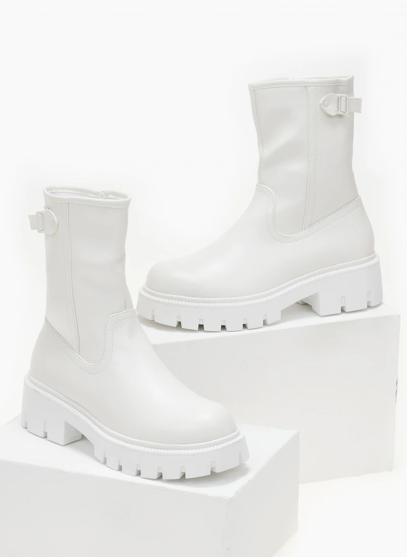 The Fashion Project Μποτάκια Biker με τρακτερωτή σόλα – Λευκό