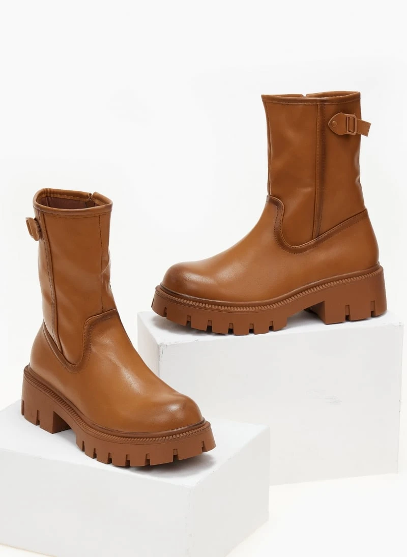 The Fashion Project Μποτάκια Biker με τρακτερωτή σόλα – Ταμπά