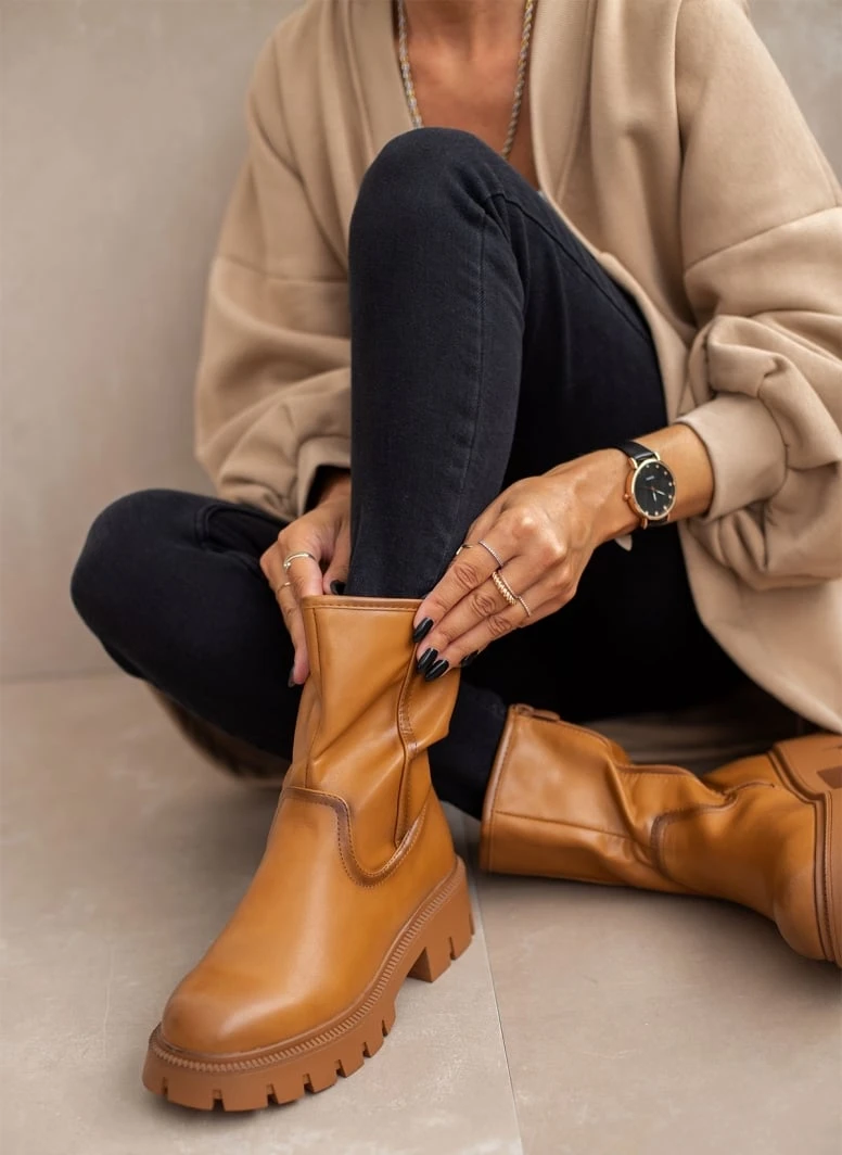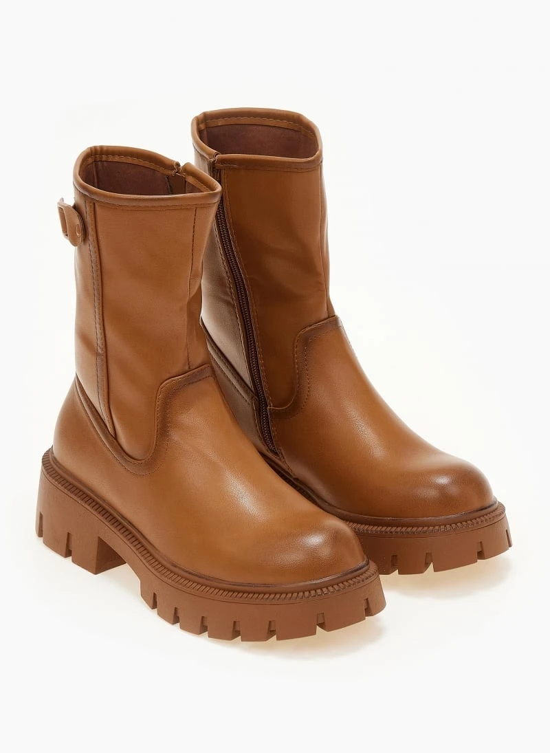 Μποτάκια casual με τρακτερωτή σόλα. Στρογγυλή φόρμα. Έχουν μικρό ζωνάκι στο τελείωμα