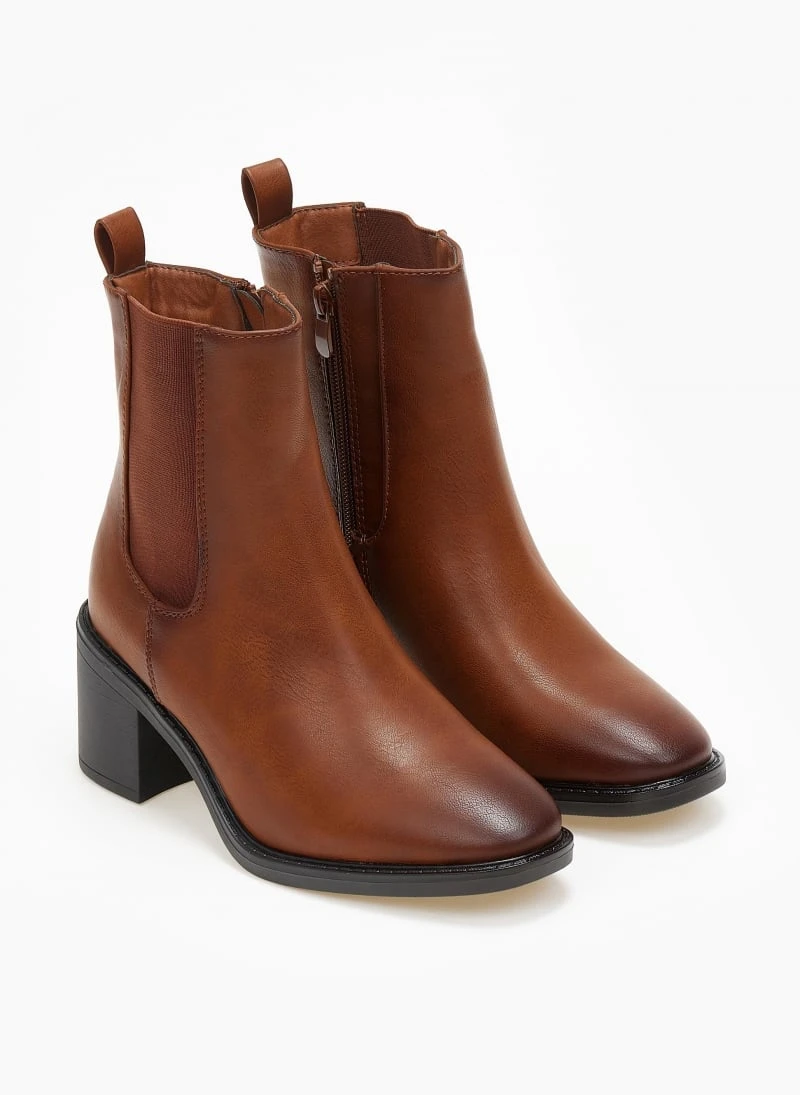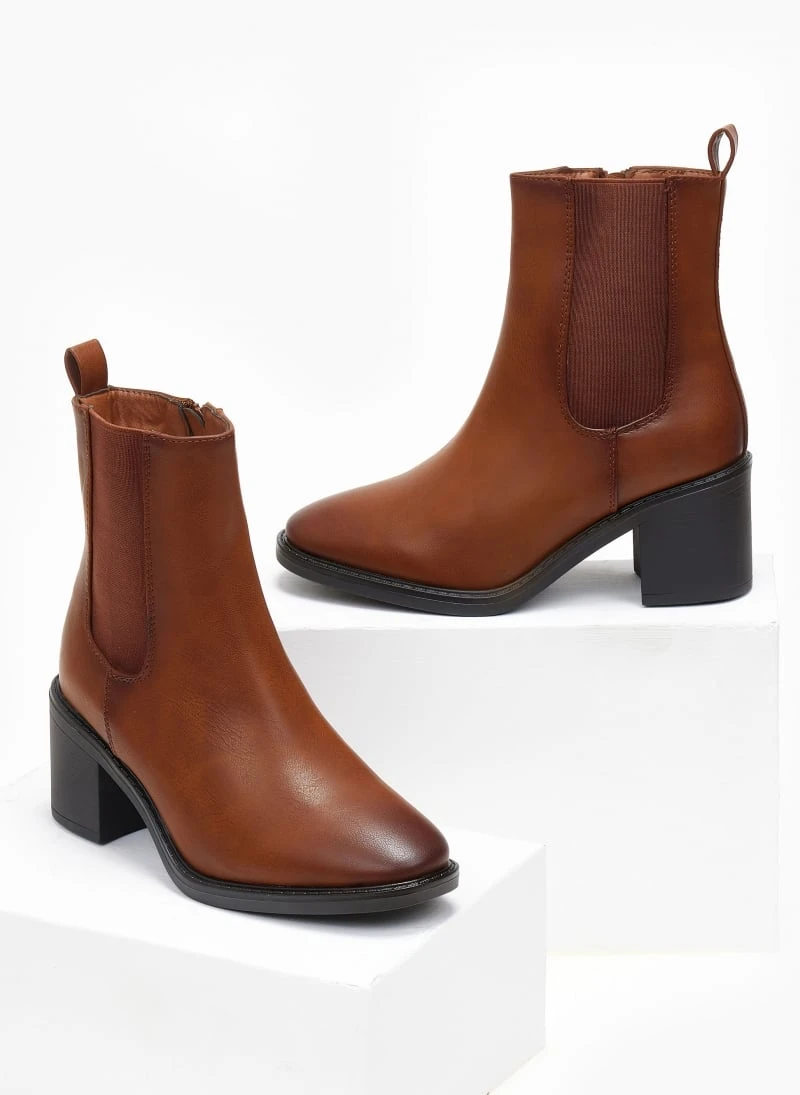 Μποτάκια casual με λάστιχο στην εξωτερική τους πλευρά. Έχουν χοντρό τακούνι.