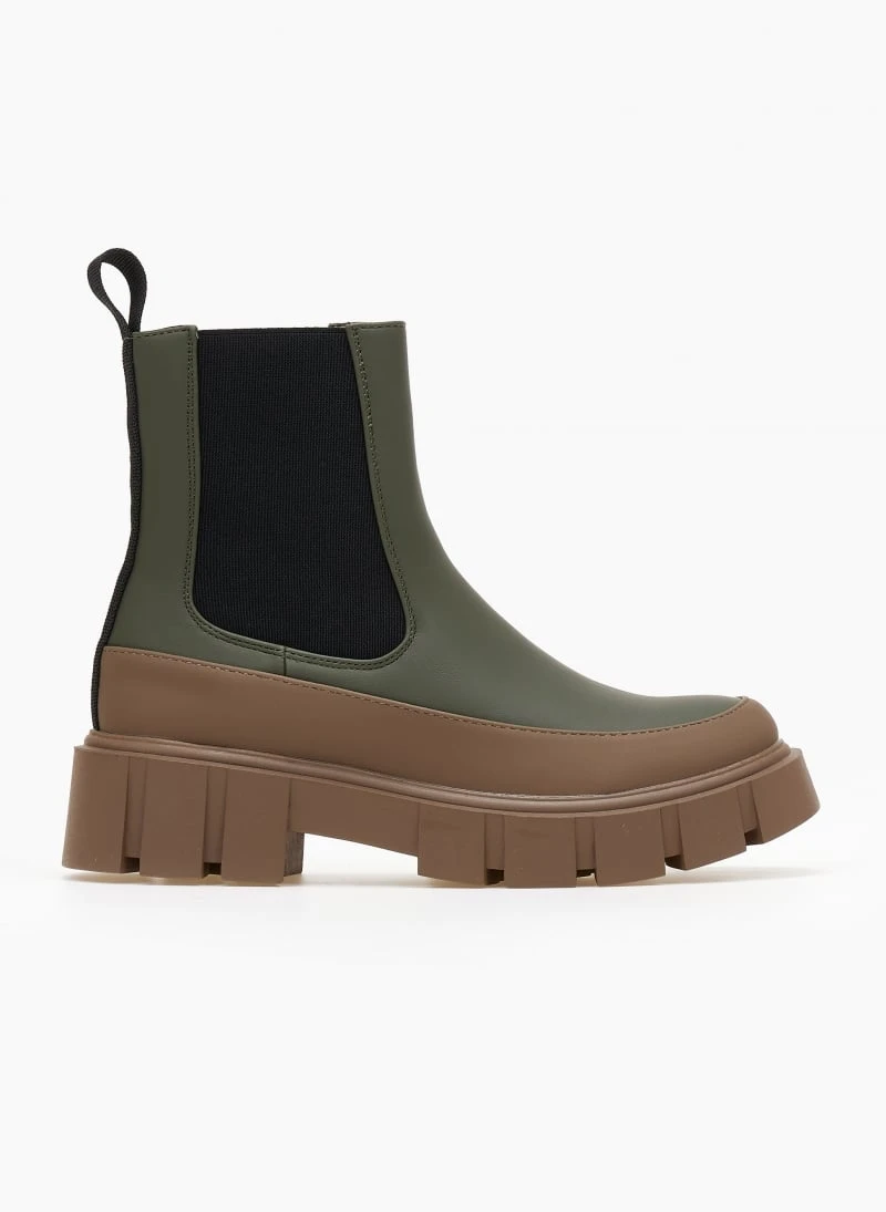 The Fashion Project Μποτάκια Chelsea με διχρωμία – Λαδί