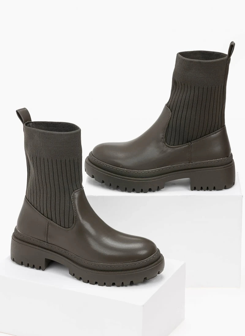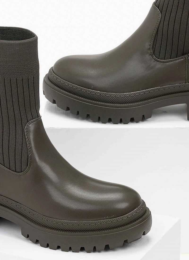 The Fashion Project Μποτάκια κάλτσα – Χακί