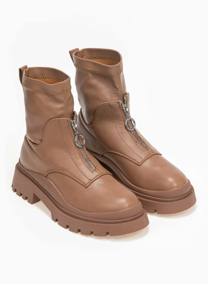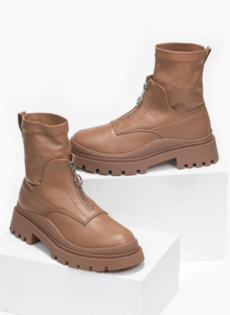 The Fashion Project Μποτάκια κάλτσα με φερμουάρ – Κάμελ