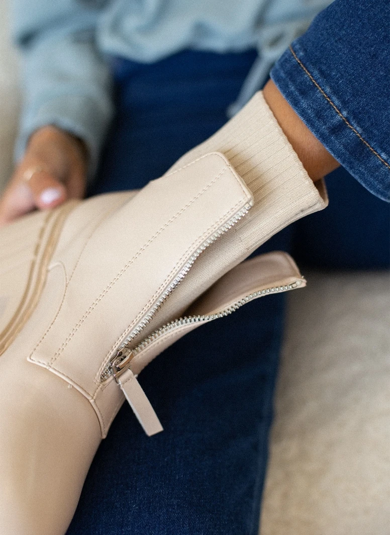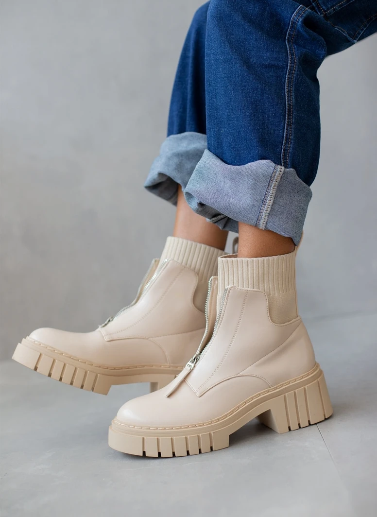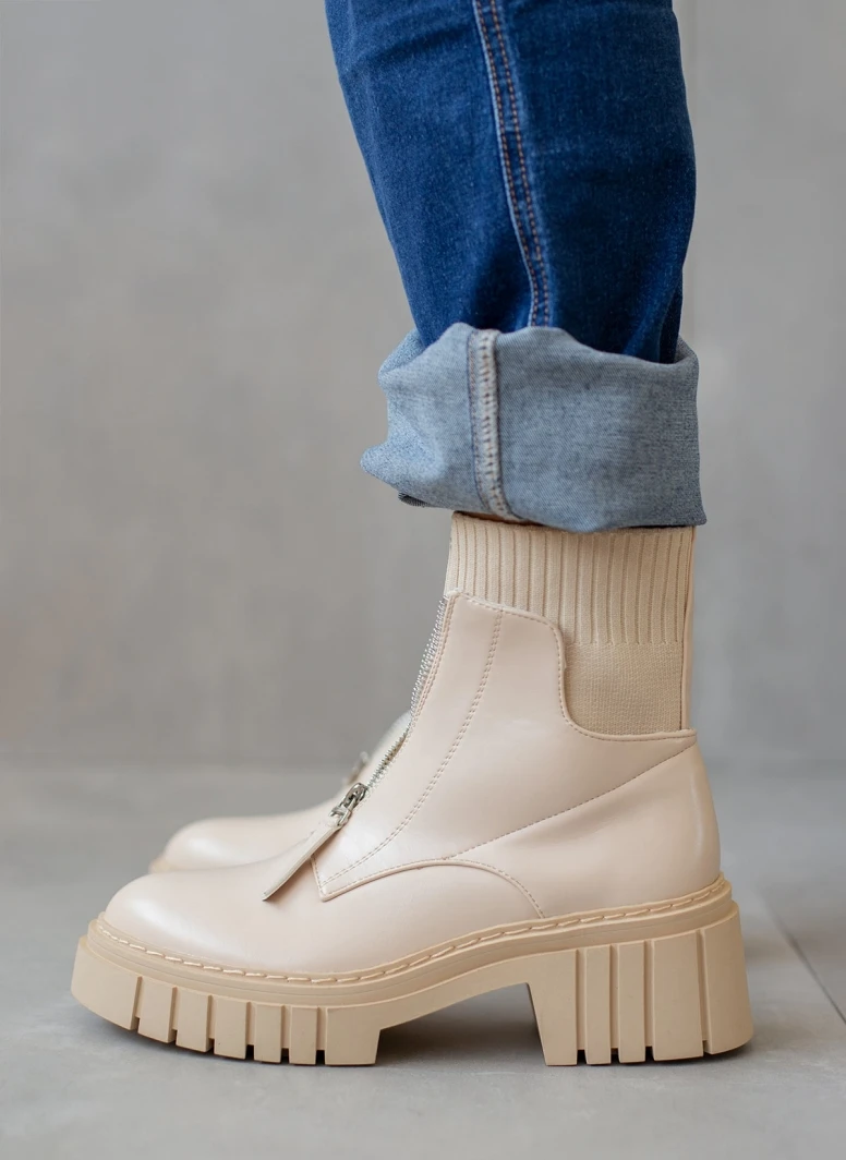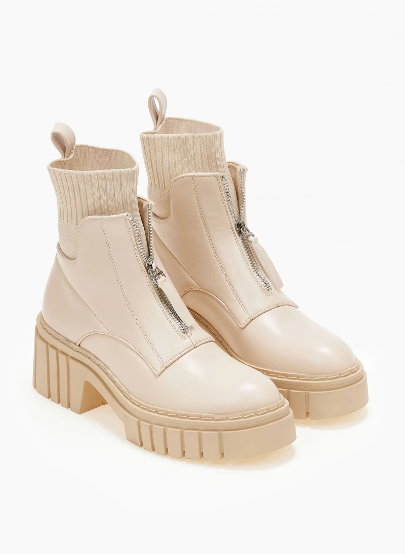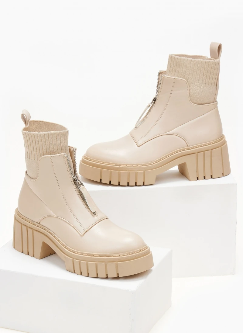 The Fashion Project Μποτάκια κάλτσα με φερμουάρ – Μπεζ