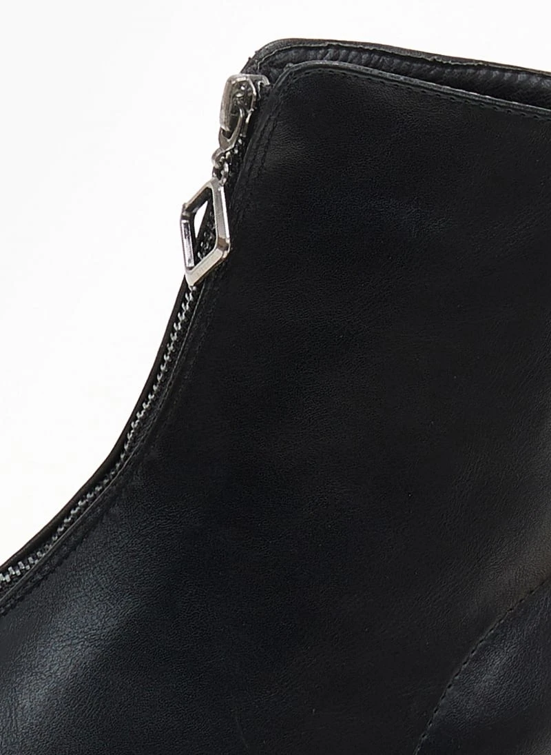 Casual μποτάκια σε καρέ γραμμή. Έχουν χαμηλό τετράγωνο τακούνι. Κλείνουν με φερμουάρ στο κουτεπιέ.