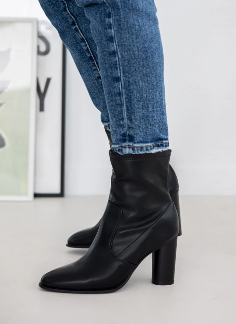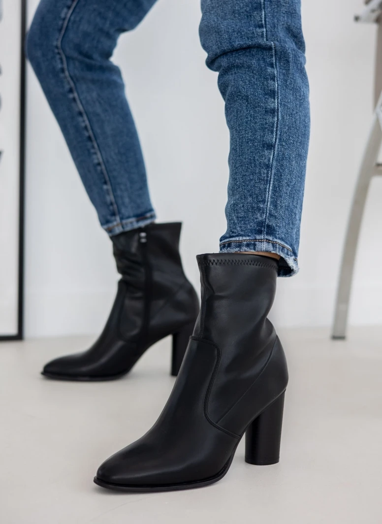 Μποτάκια με στρογγυλό ψηλό τακούνι. Εφαρμοστή γραμμή στη γάμπα.