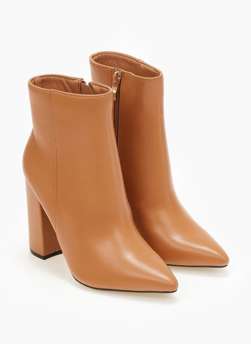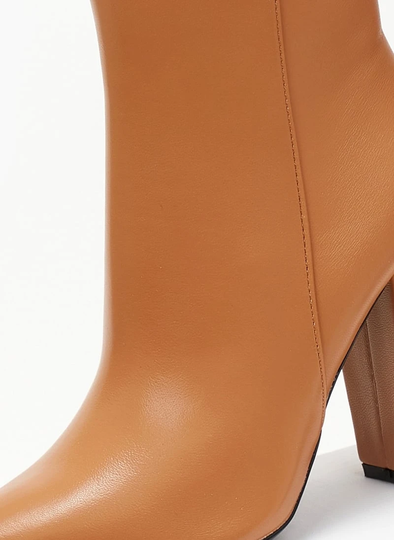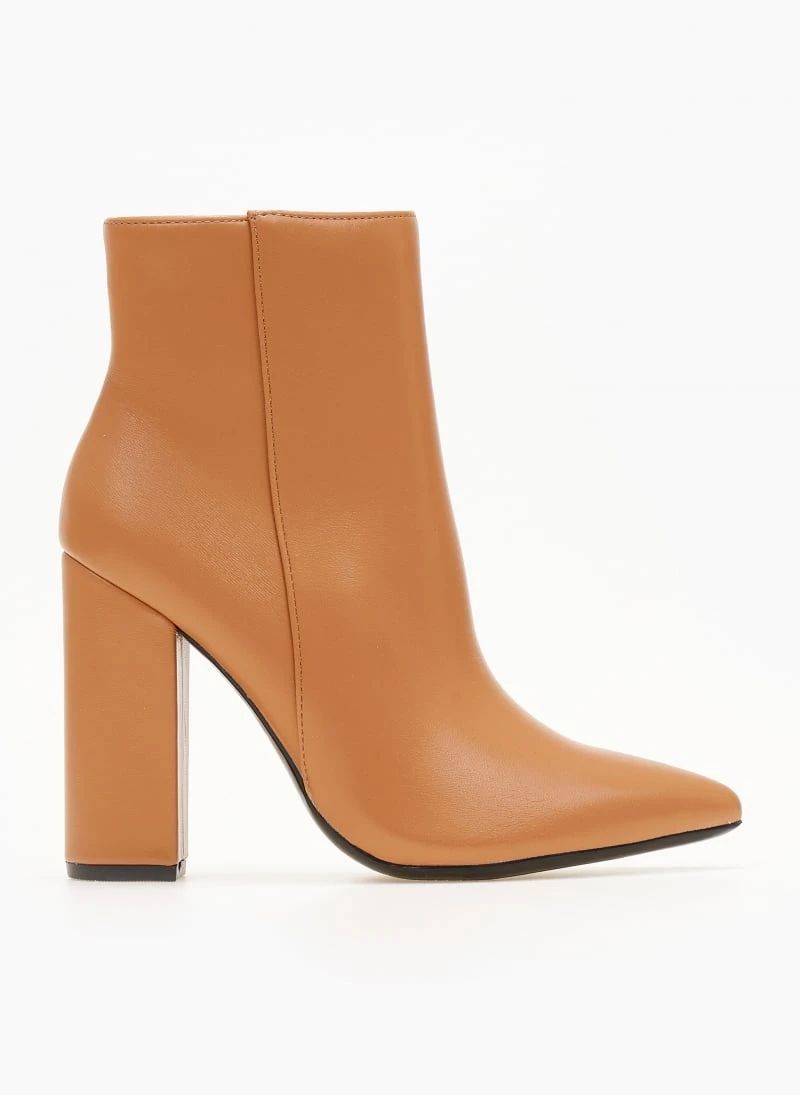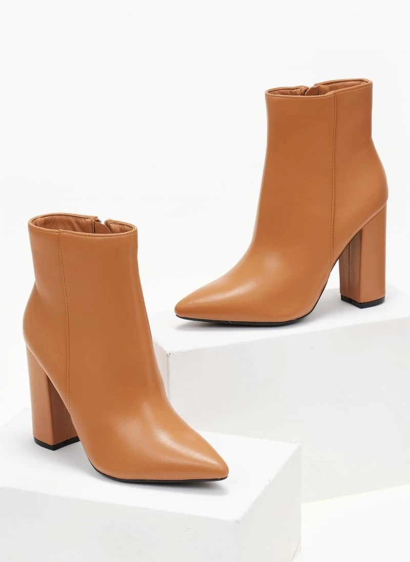 The Fashion Project Μποτάκια μυτερά με κάθετη ραφή – Κάμελ