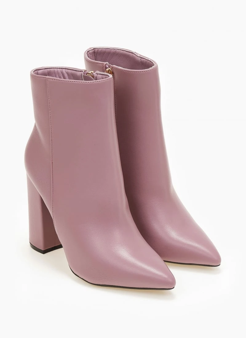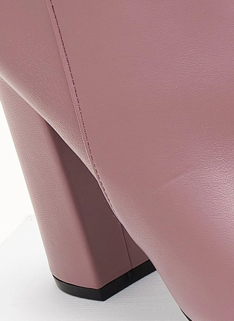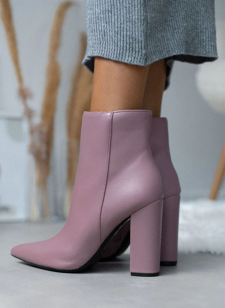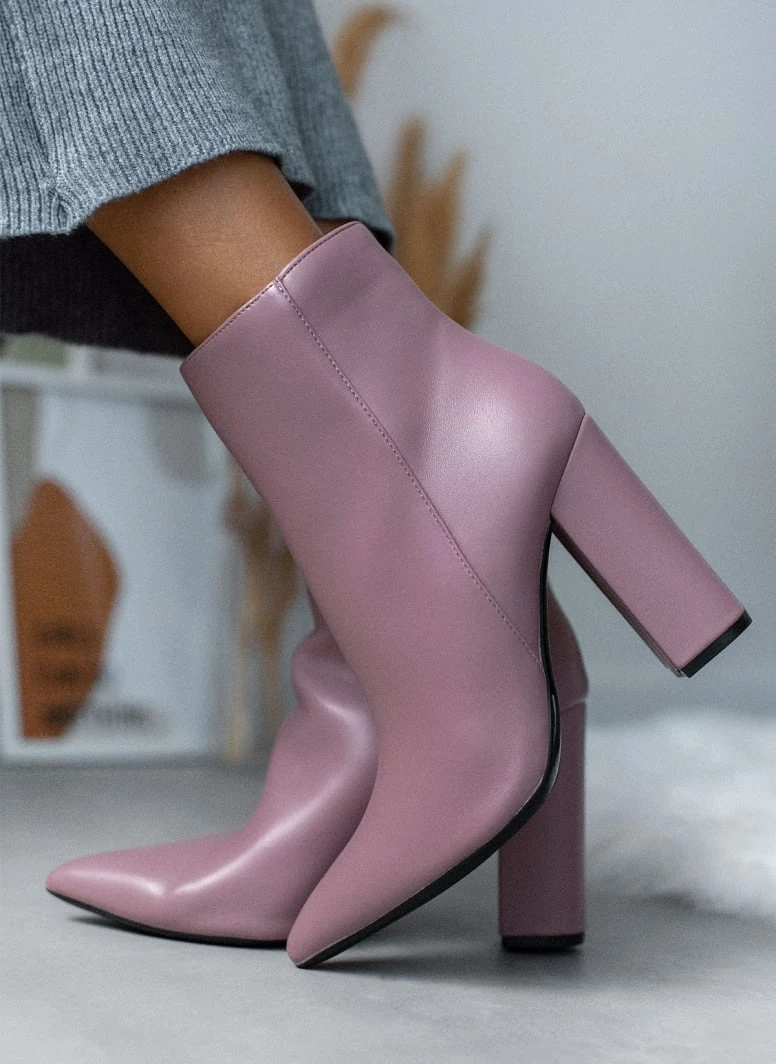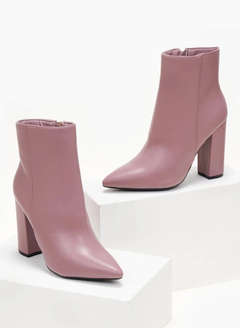 Μποτάκια μυτερά με ψηλό χοντρό τακούνι.Έχουν κάθετη ραφή στην εξωτερική τους πλευρά.