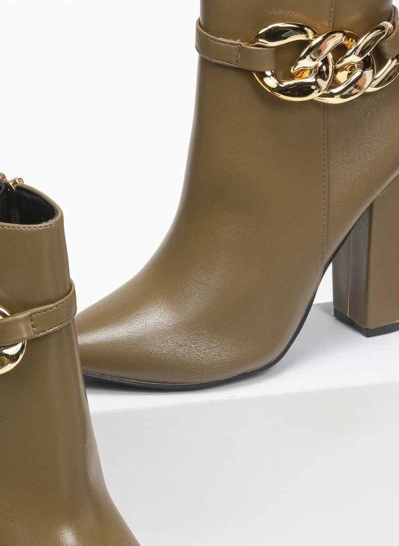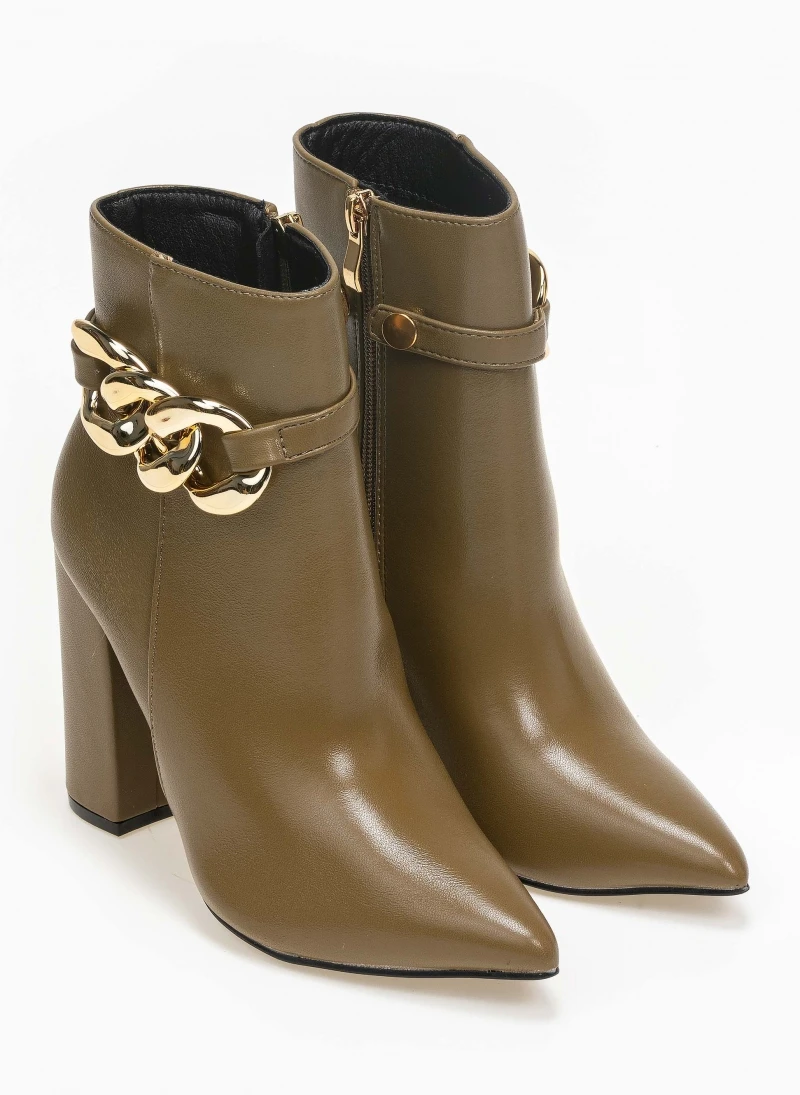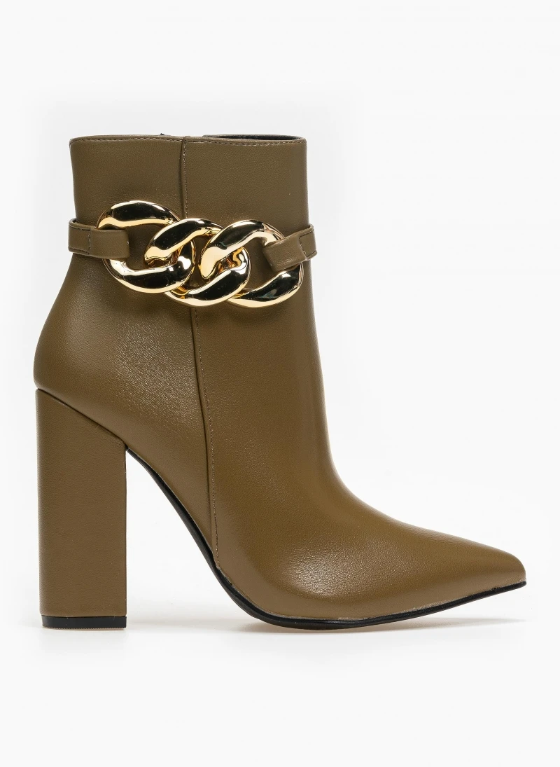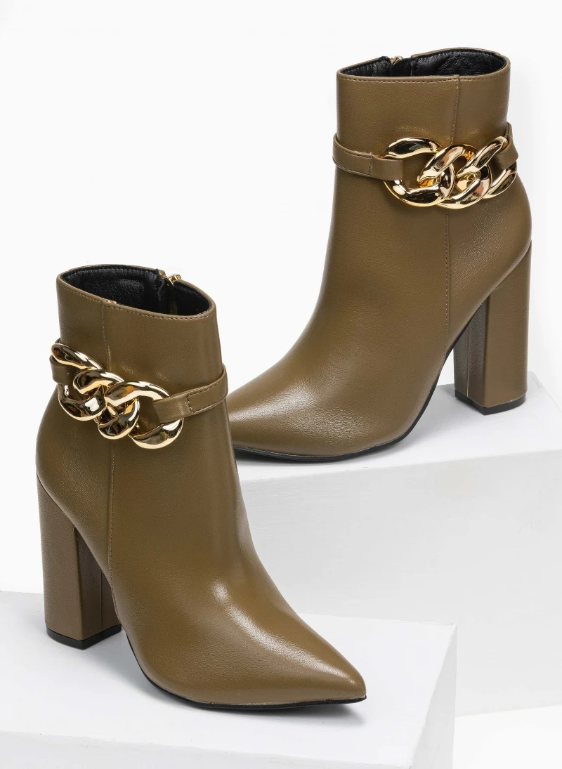 The Fashion Project Μποτάκια μυτερά με σχέδιο αλυσίδα – Λαδί