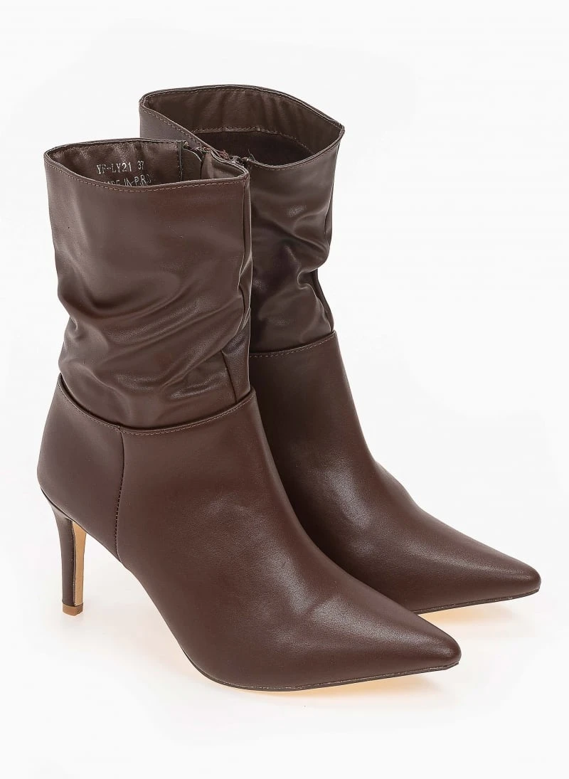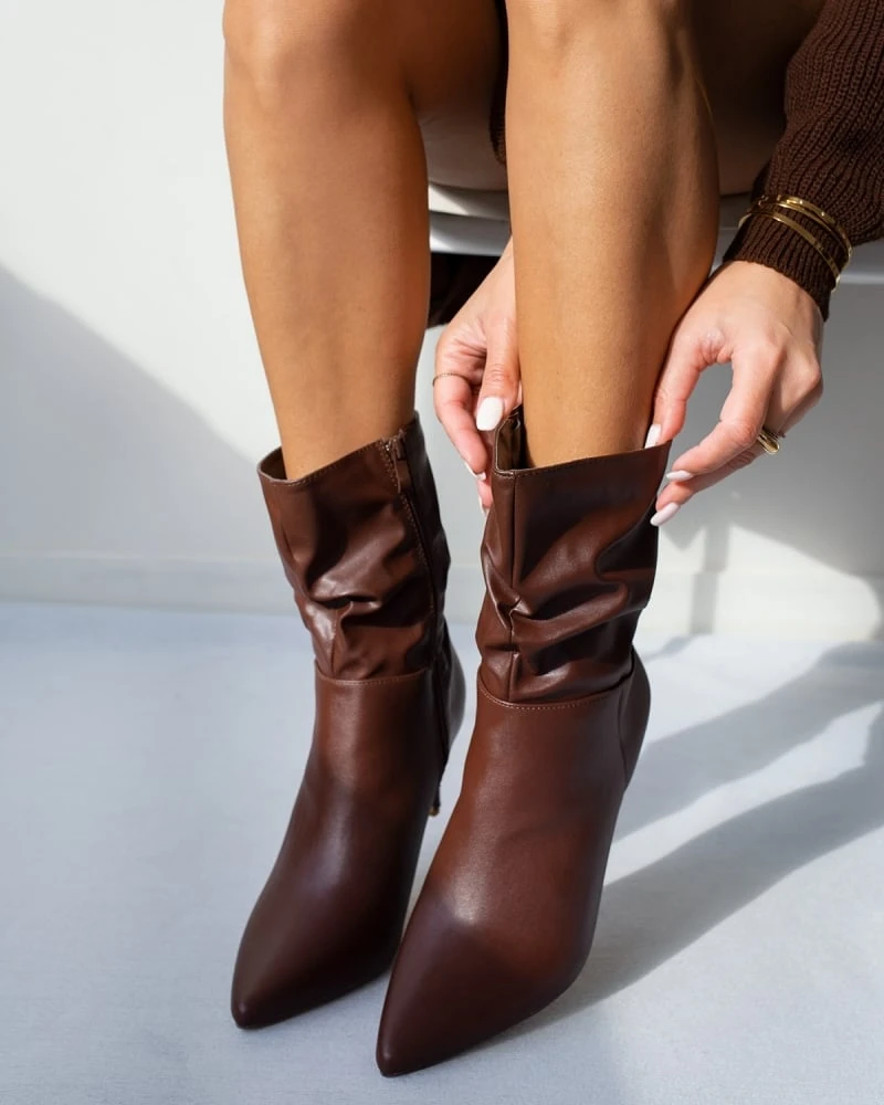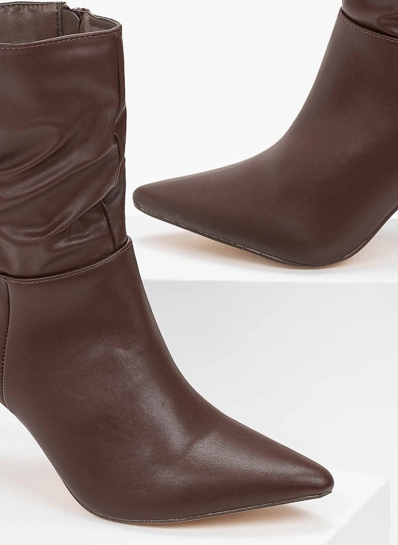 The Fashion Project Μποτάκια μυτερά με σούρες – Καφέ