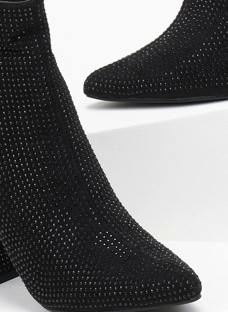 The Fashion Project Μποτάκια μυτερά με Strass – Μαύρο