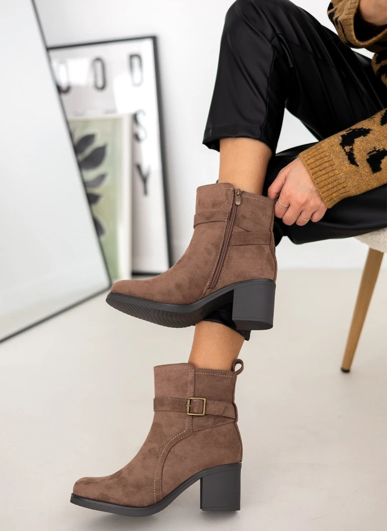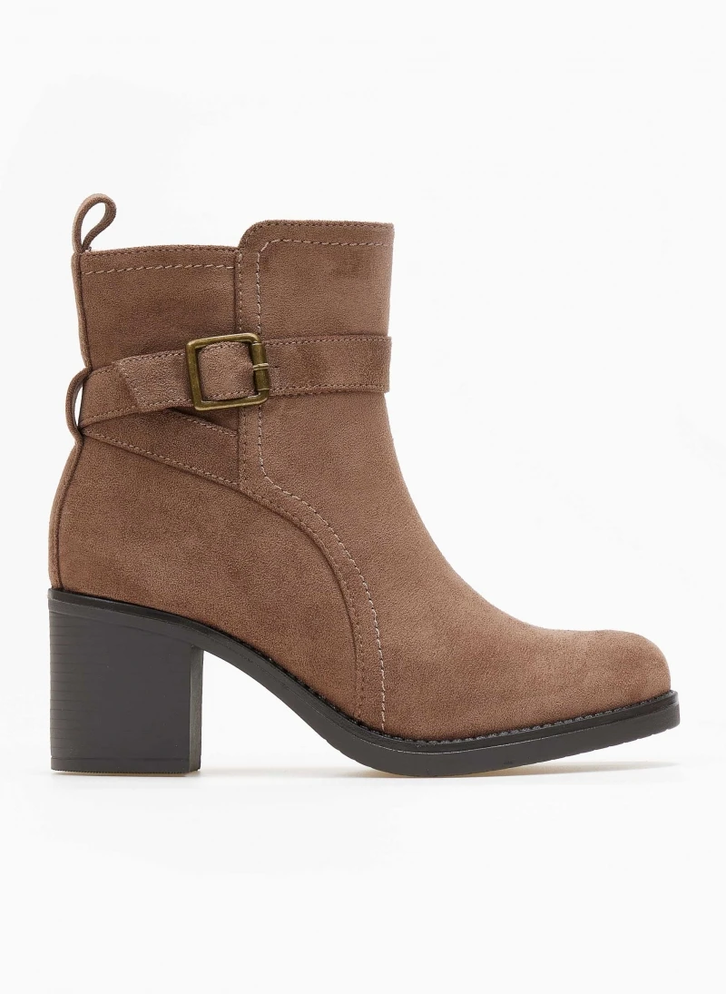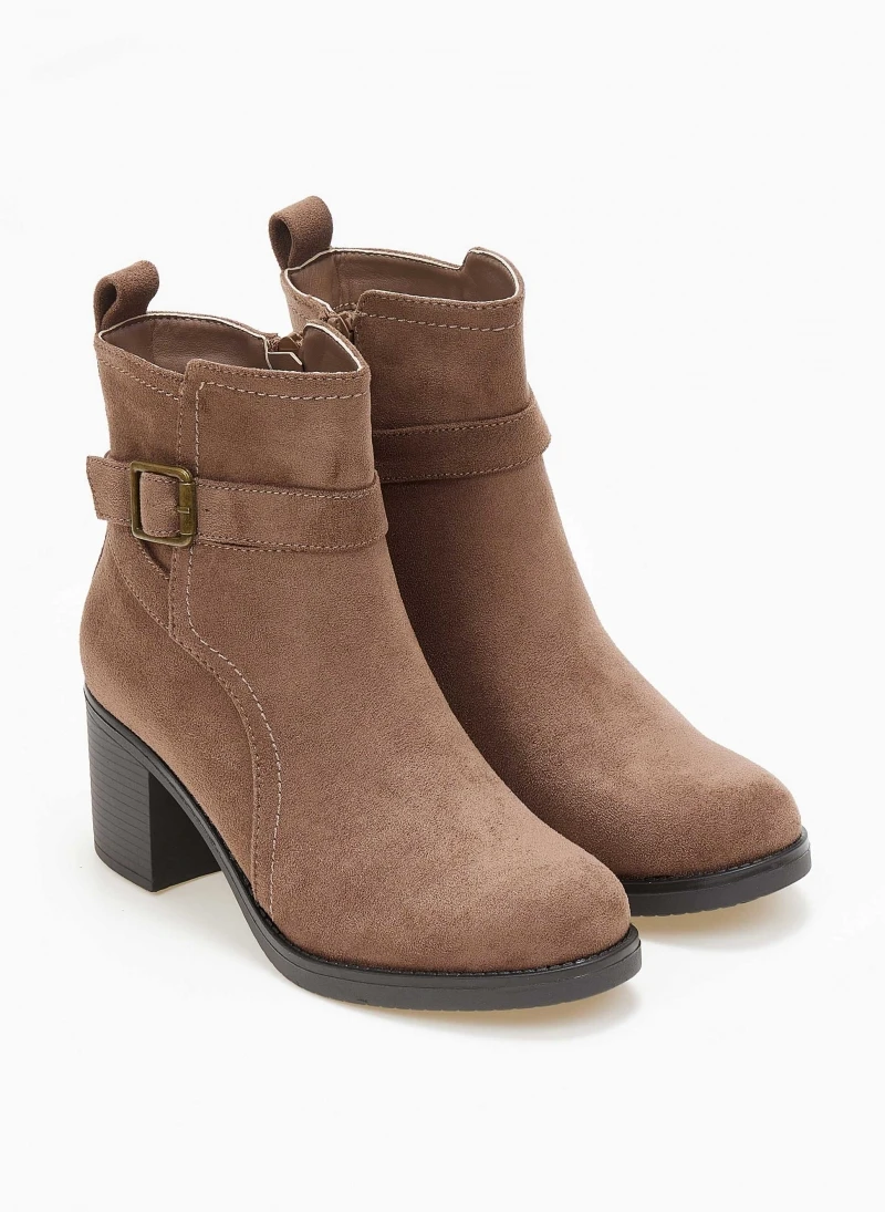 The Fashion Project Μποτάκια Suede με αγκράφα – Τάουπε