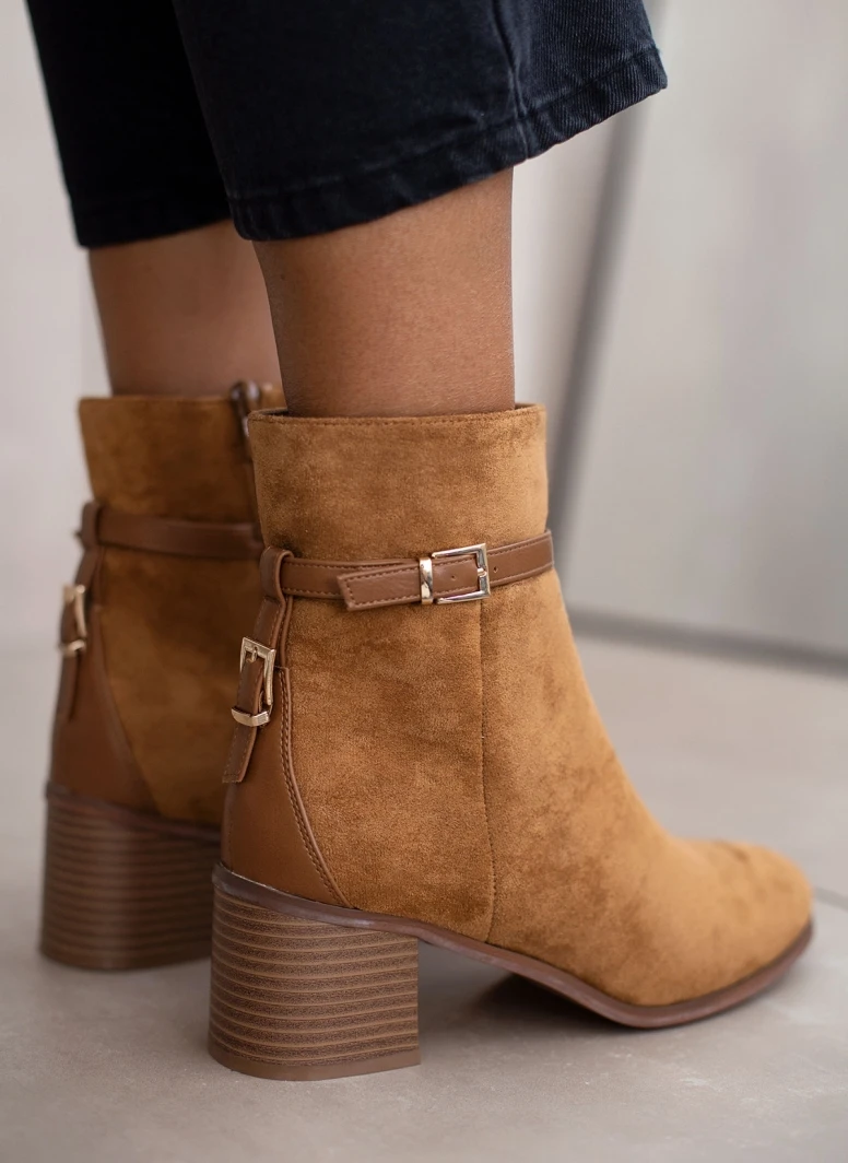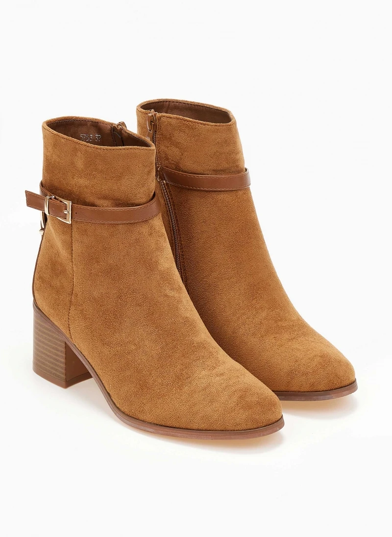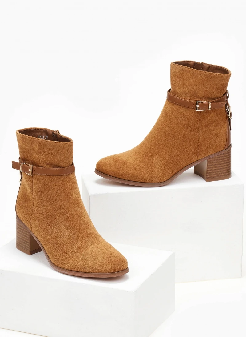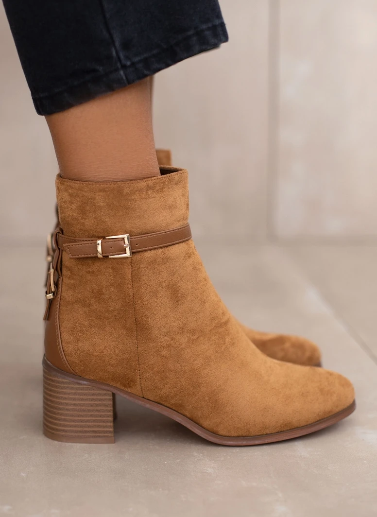 The Fashion Project Μποτάκια Suede με λεπτό ζωνάκι – Κάμελ