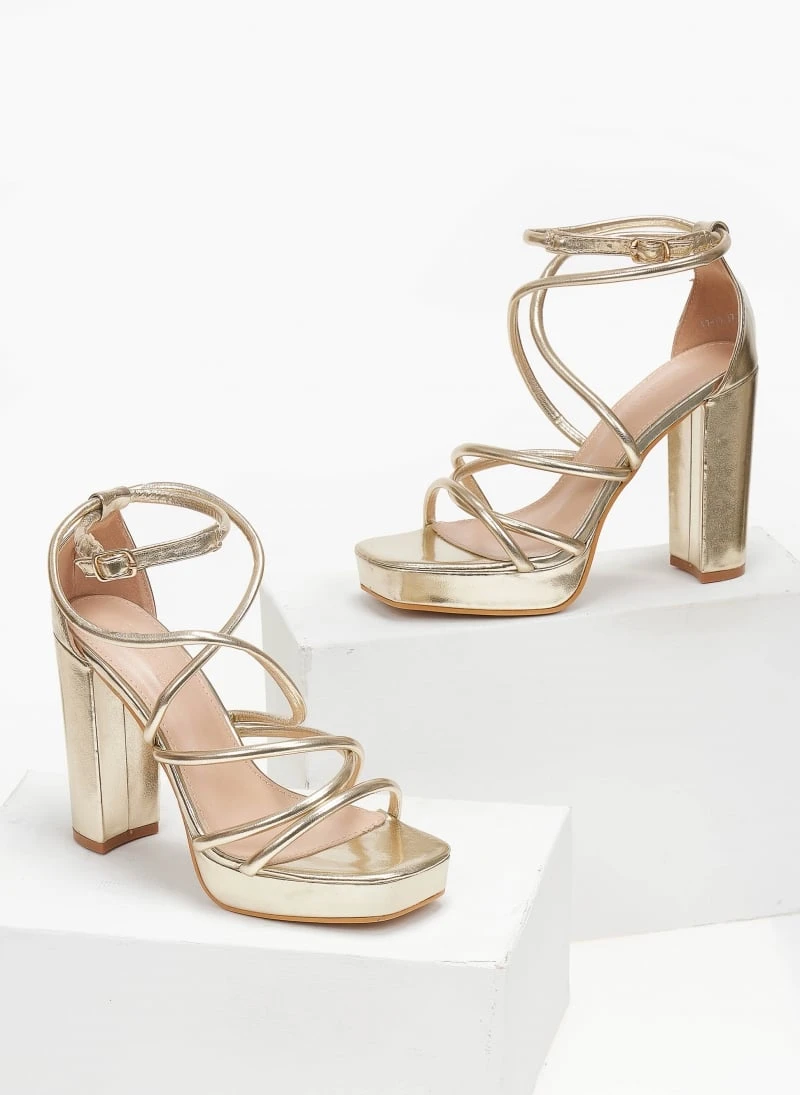 Πέδιλα με χιαστί λουράκια. Έχουν φιάπα και ψηλό χοντρό τακούνι. Κλειστή φτέρνα. Δένουν με μπαρέτα στο ύψος του αστραγάλου.