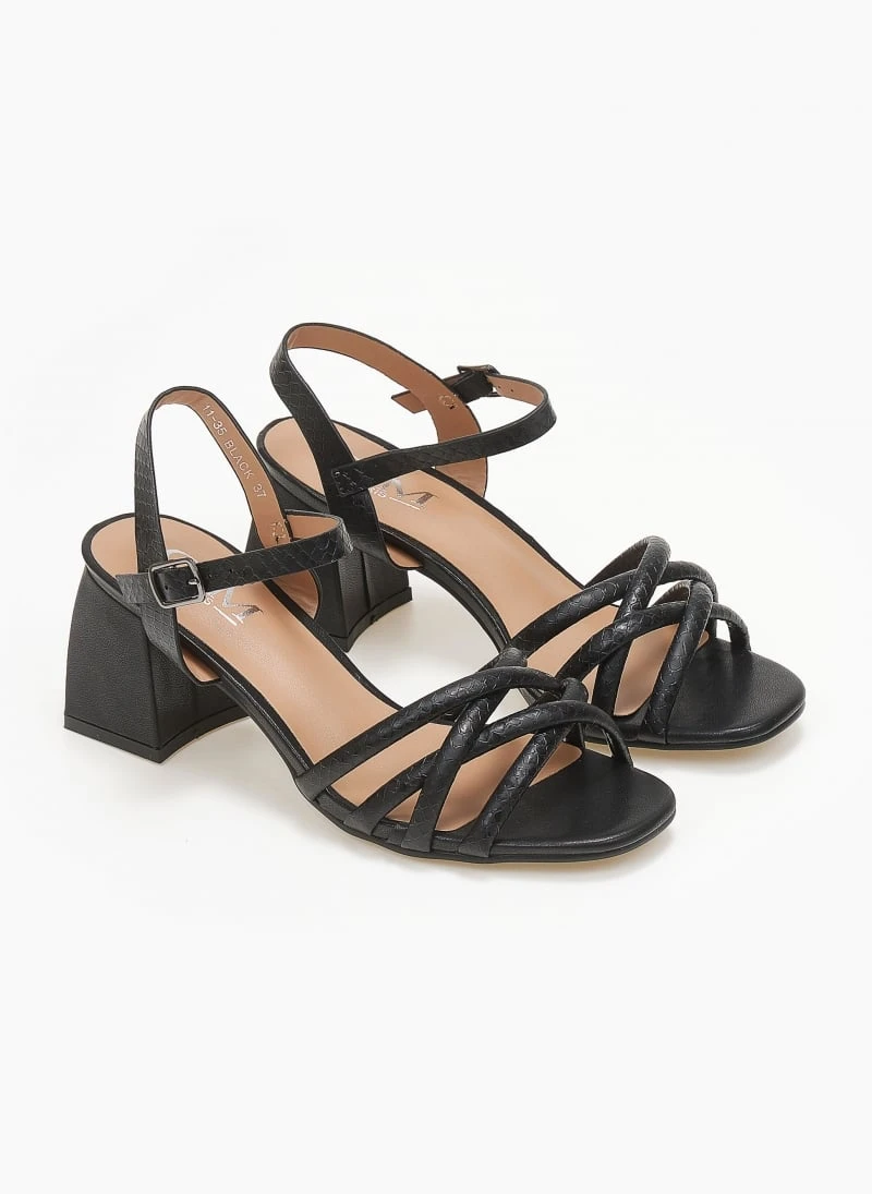 The Fashion Project Πέδιλα με μπαρέτα και Pattern στα λουράκια – Μαύρο