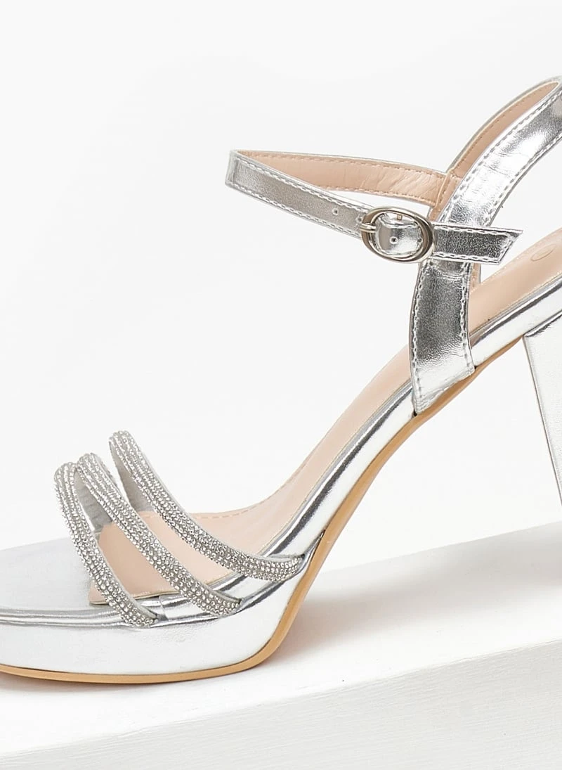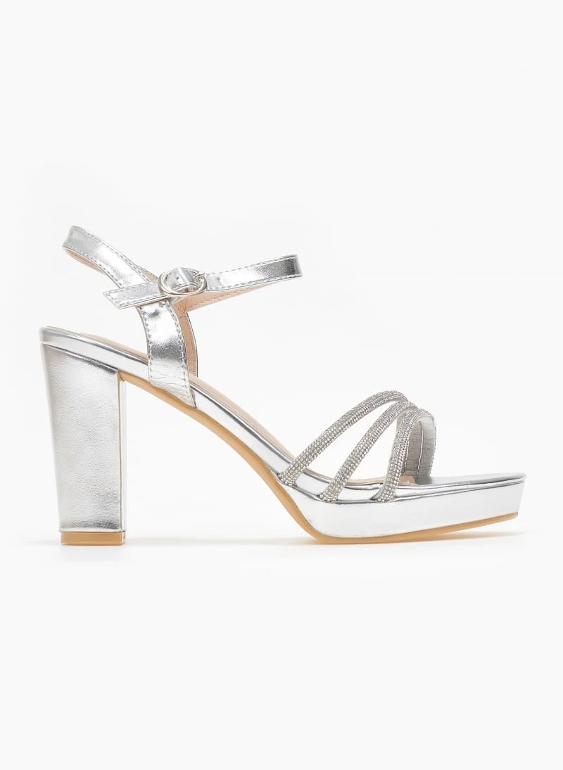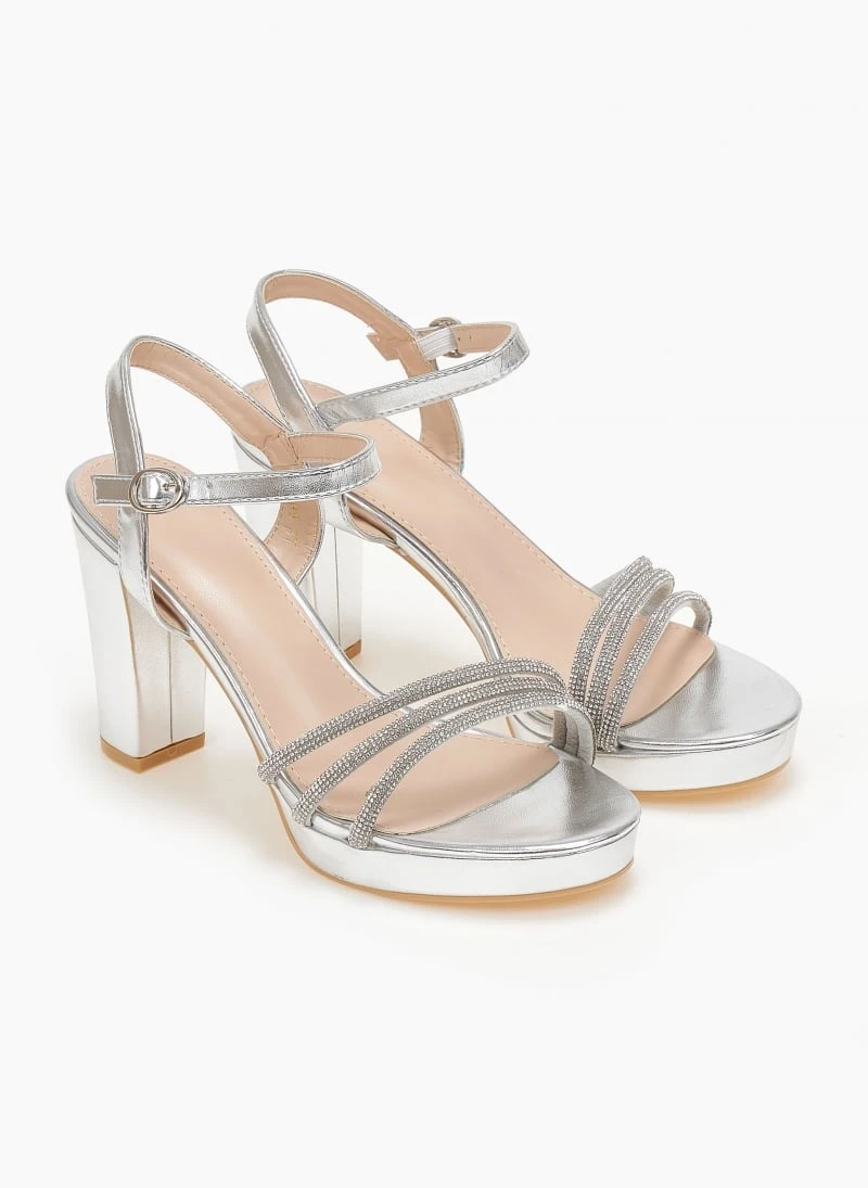 The Fashion Project Πέδιλα με μπαρέτα και στρας – Ασημί
