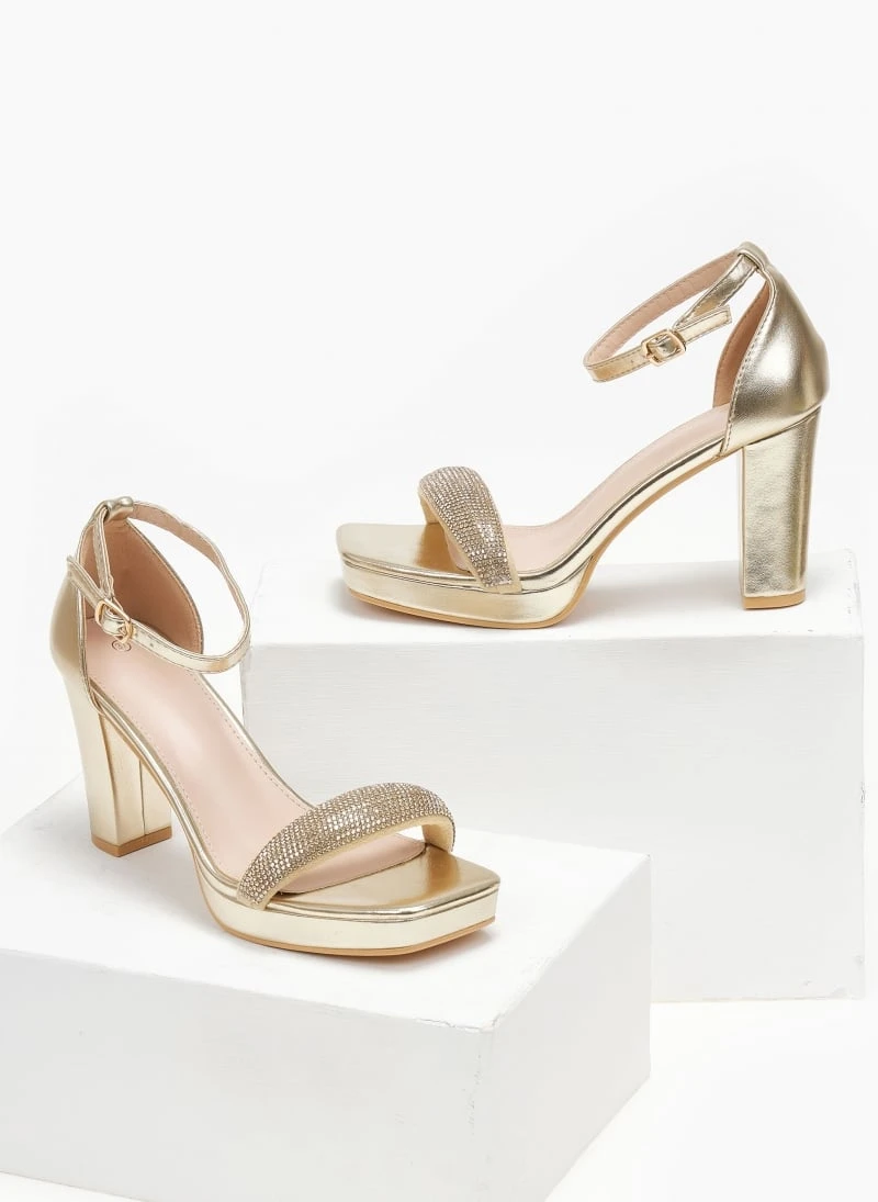 The Fashion Project Πέδιλα με μπαρέτα και στρας φάσα – Χρυσό