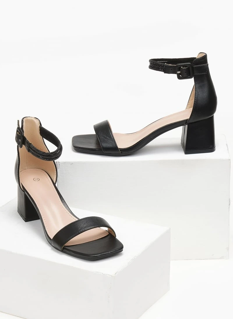 The Fashion Project Πέδιλα με μπαρέτα και στρας – Μαύρο