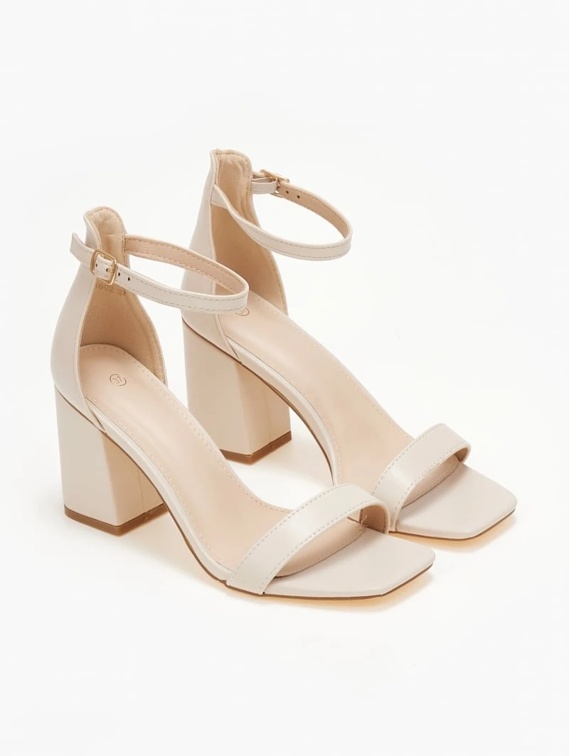 Πέδιλα σε καρέ γραμμή. Έχουν κλειστή φτέρνα. Δένουν με μπαρέτα στο ύψος του αστραγάλου.
