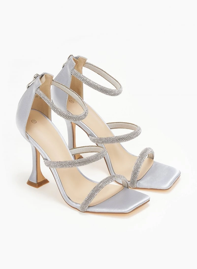 The Fashion Project Πέδιλα με στρας και φερμουάρ σατέν – Ασημί