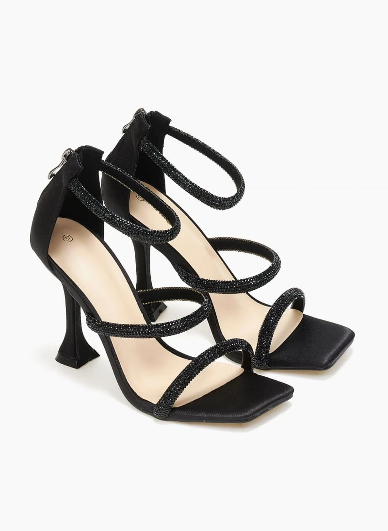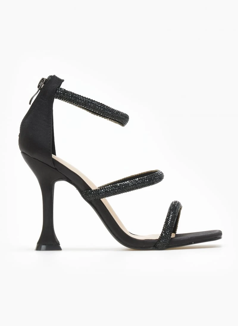 The Fashion Project Πέδιλα με στρας και φερμουάρ σατέν – Μαύρο/Ασημί