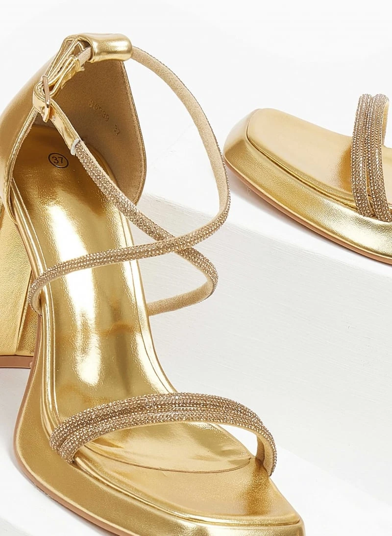 The Fashion Project Πέδιλα με στρας και φιάπα – Χρυσό