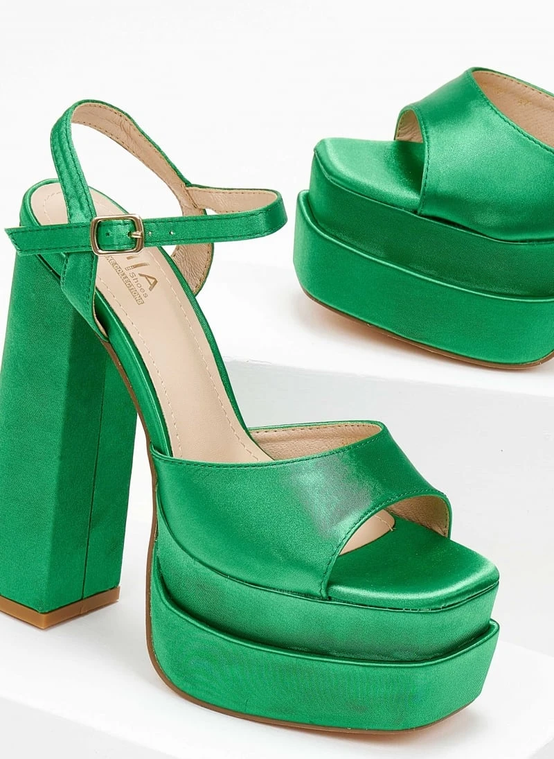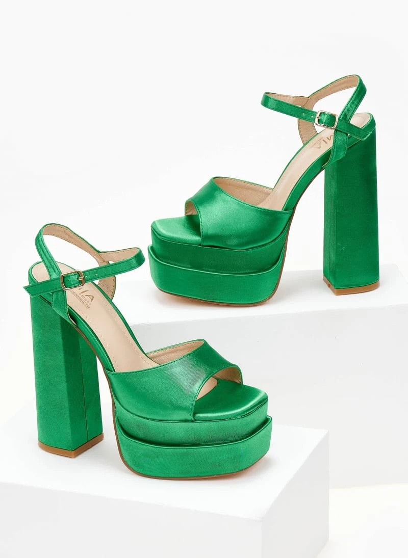 The Fashion Project Πέδιλα Platform σατέν με μπαρέτα – Πράσινο