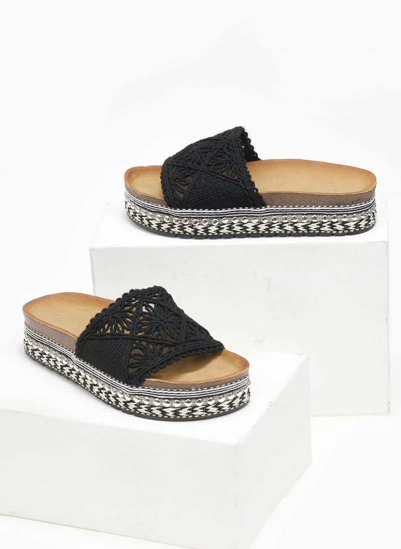 The Fashion Project Σανδάλια με Crochet φάσα και πέρλες – Μαύρο