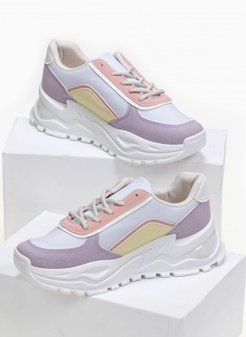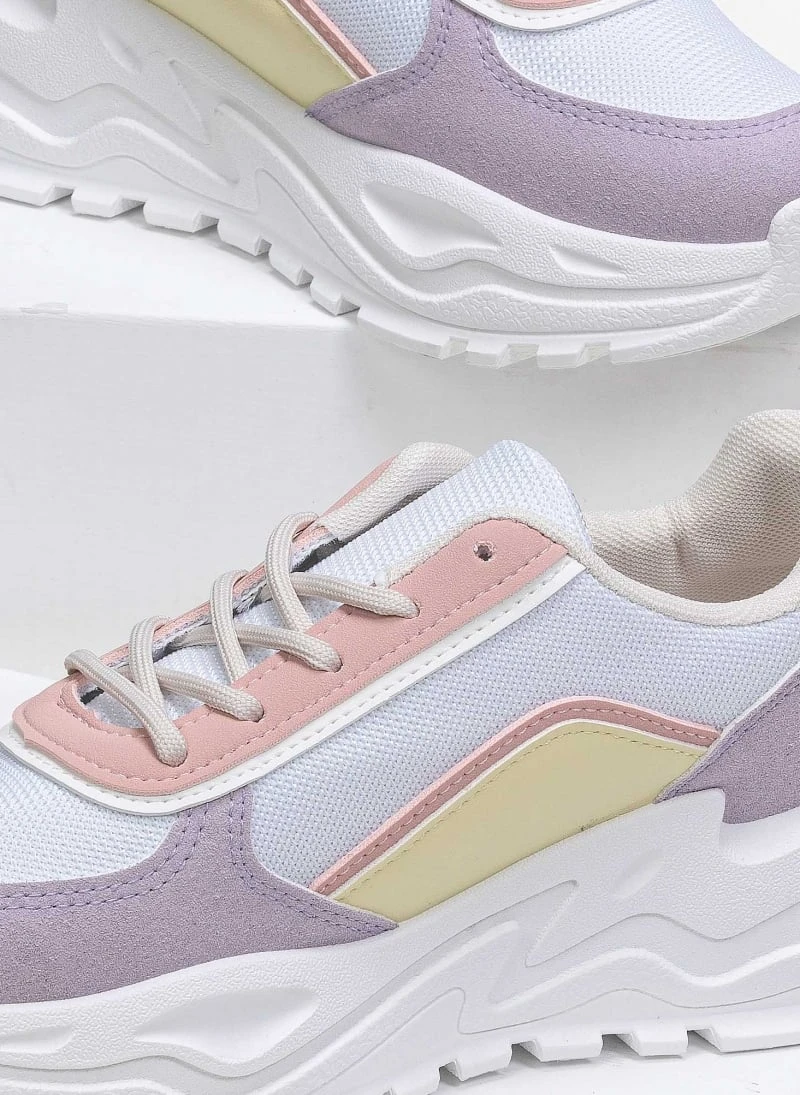 Sneakers chunky με ψηλή σόλα και ανάγλυφο σχέδιο. Συνδυάζουν ύφασμα και τεχνόδερμα.