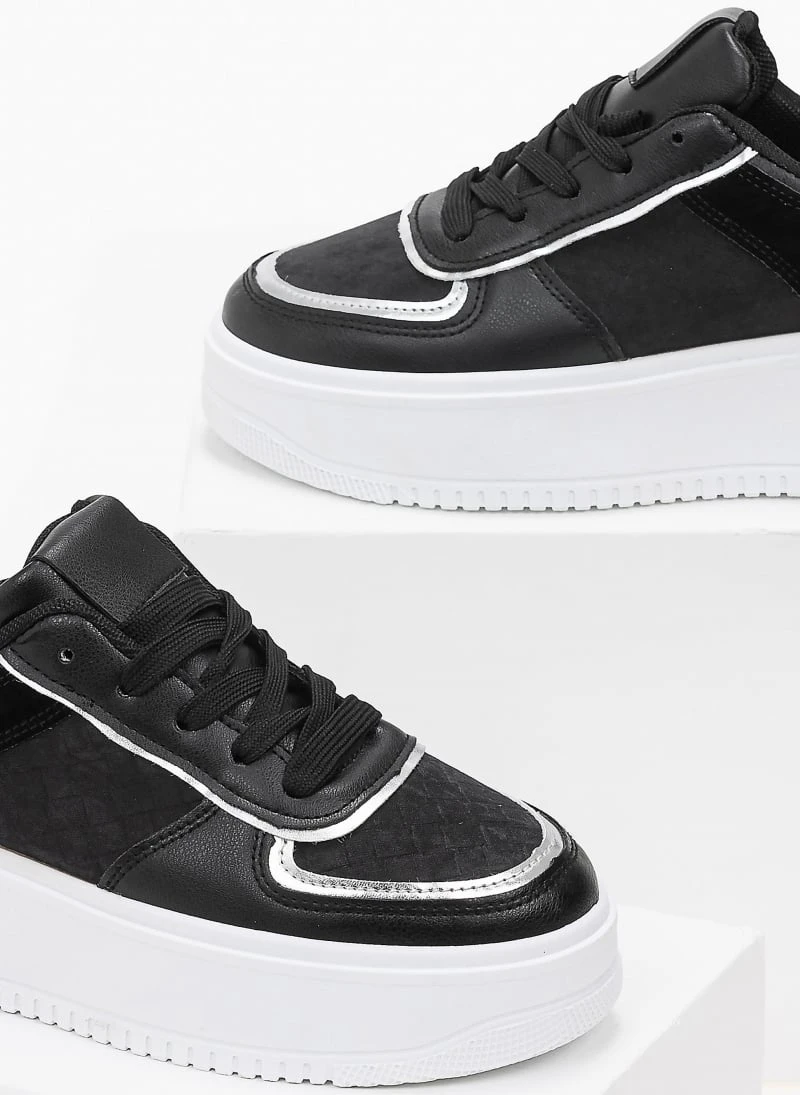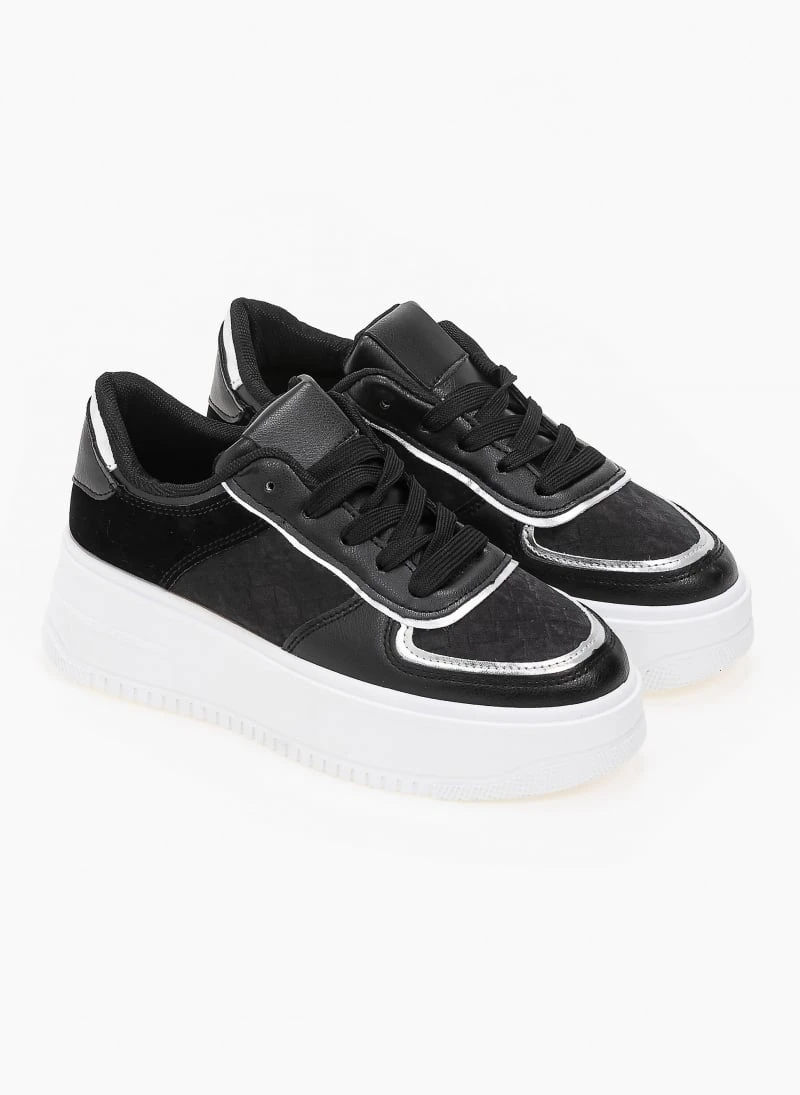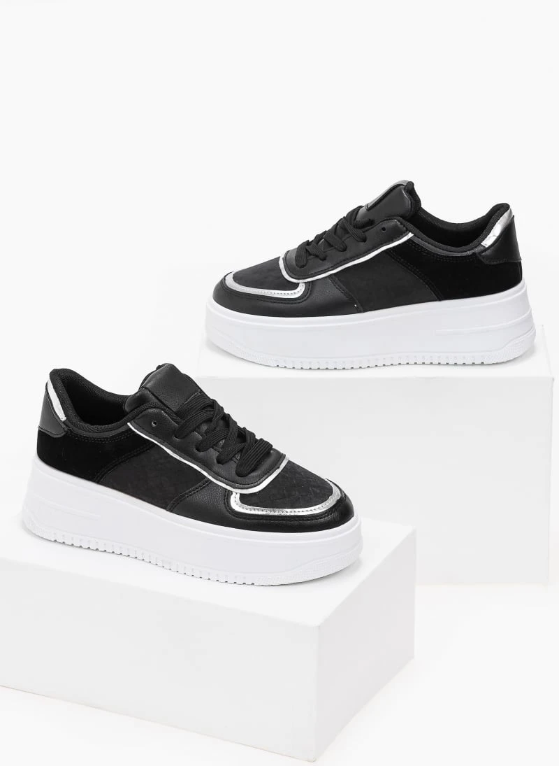 Sneakers flatforms με διχρωμία σε συνδυασμούς υλικών. Έχουν ψηλή σόλα.