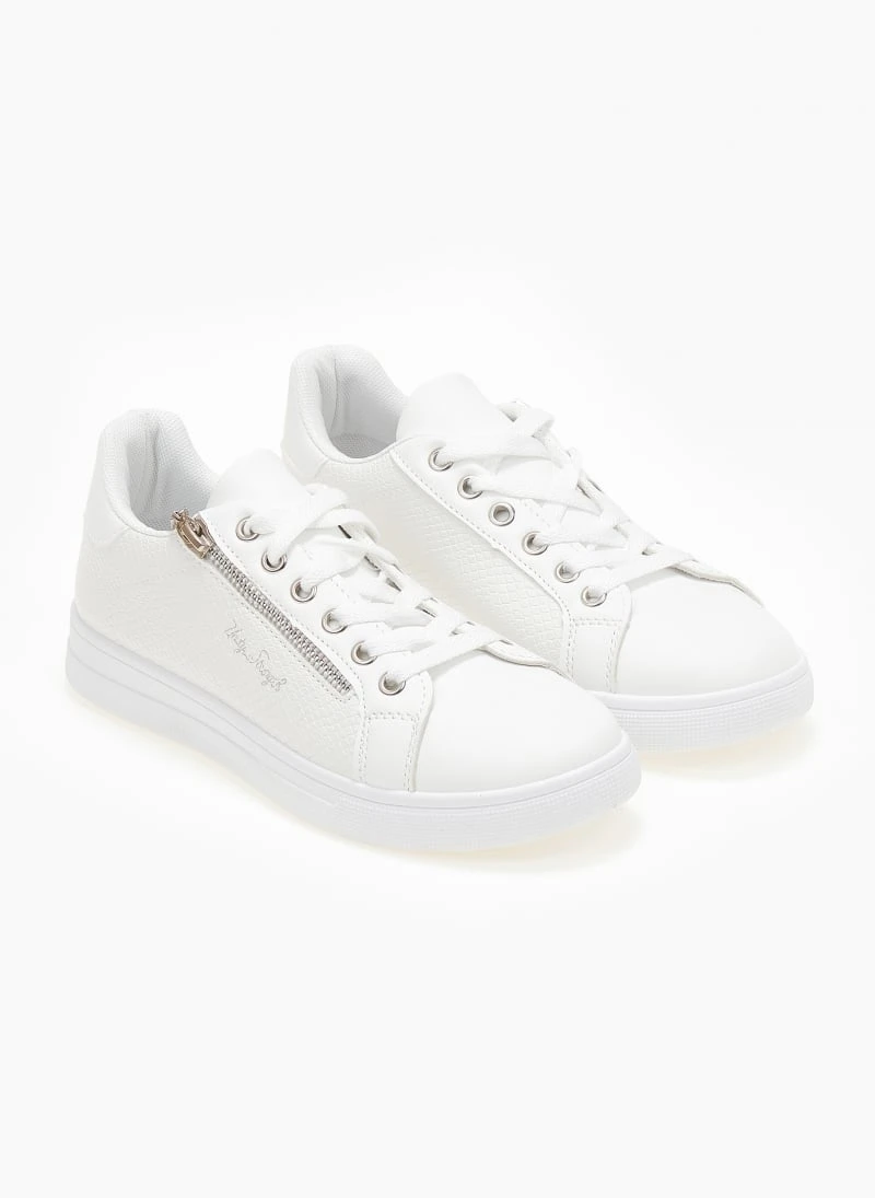 Sneakers κροκό με φερμουάρ στην εξωτερική τους πλευρά. Δένουν με κορδόνια.