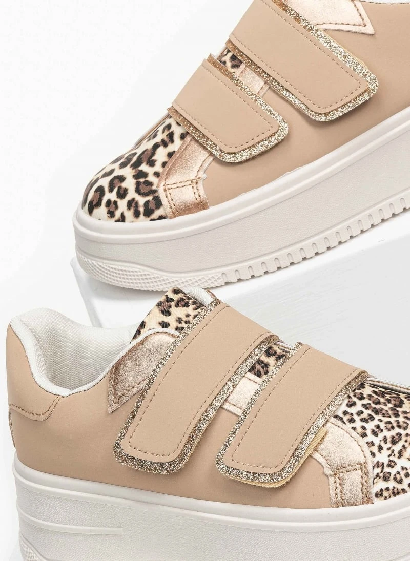 Sneakers με διπλή σόλα.Έχουν velcro αυτοκόλλητα με glitter λεπτομέρεια.Leopard σχέδιο στο πίσω μέρος.