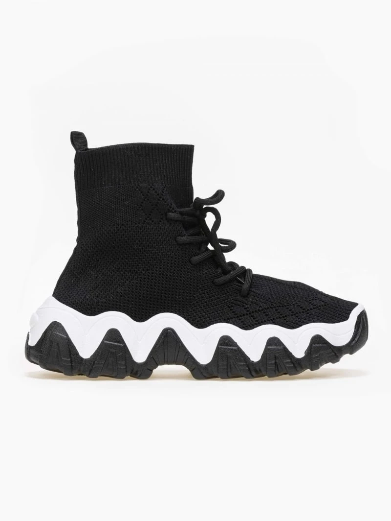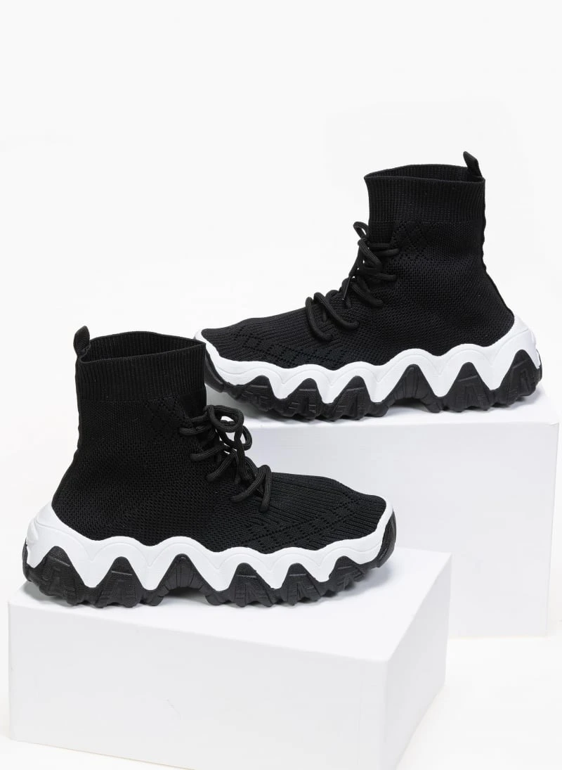 Slip on sneakers μποτάκια με πλεκτό σχέδιο. Έχουν ψηλή chunky σόλα. Διαθέτουν κορδόνια για καλύτερη εφαρμογή.