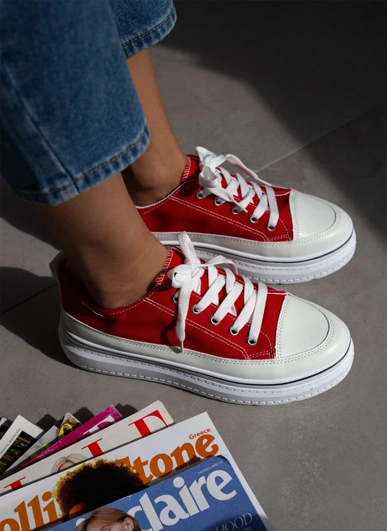 The Fashion Project Sneakers πάνινα με εφέ ραφές – Κόκκινο