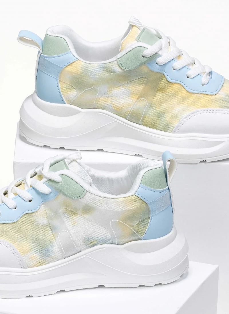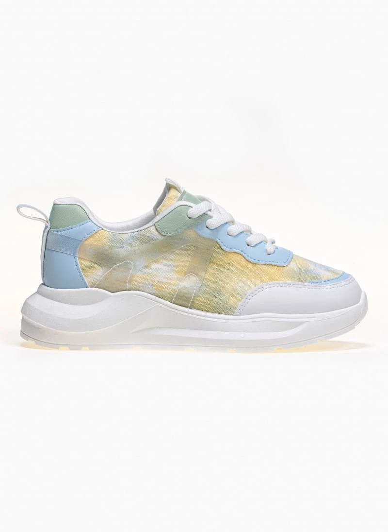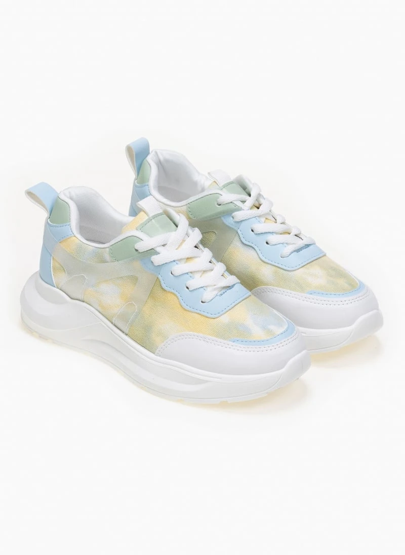 Sneakers πολύχρωμα σε συνδυασμούς χρωμάτων με διπλή σόλα. Συνδυάζουν ύφασμα και τεχνόδερμα.