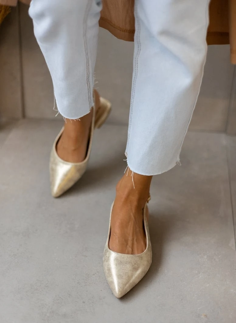 Xti Footwear Μπαλαρίνες Suede με μεταλλικό τακούνι Xti 141065 – Χρυσό