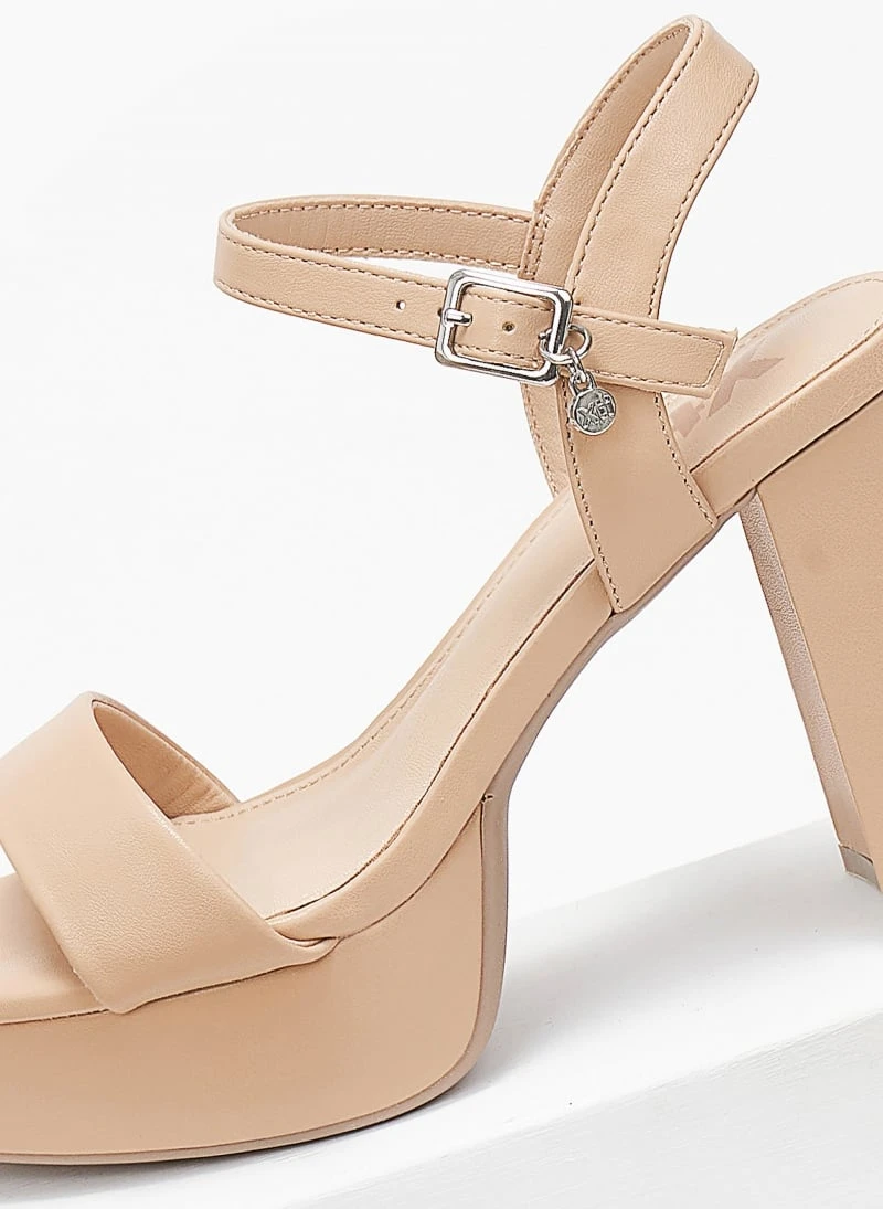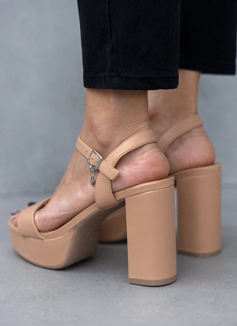 Πέδιλα Xti με μπαρέτα. Καρέ γραμμή. Έχουν χοντρό ψηλό τακούνι και φιάπα. Peta vegan approved.
