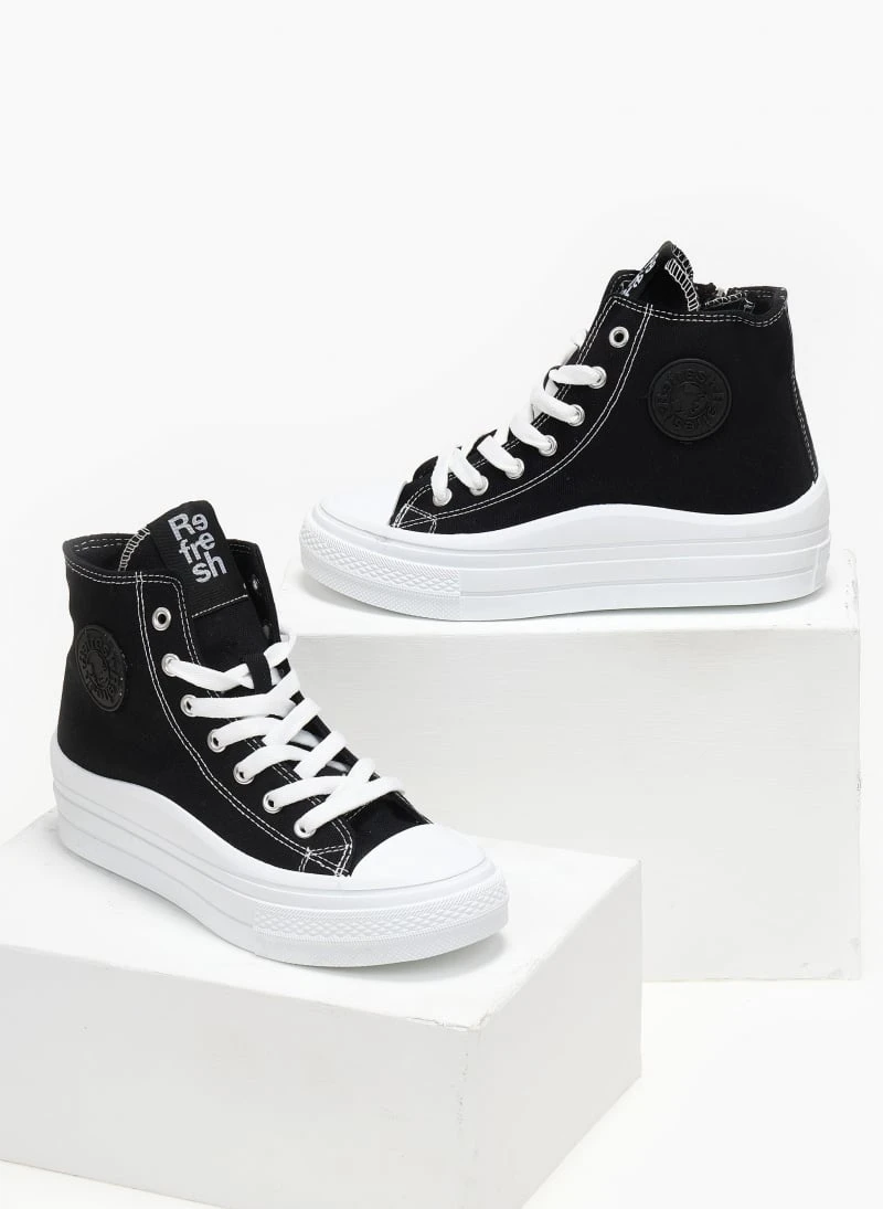 Sneakers μποτάκια πάνινα Refresh. Ψηλή σόλα. Διακριτικό λογότυπο στο πλάι. Έχουν φερμουάρ στην εσωτερική τους πλευρά. Peta vegan approved.
