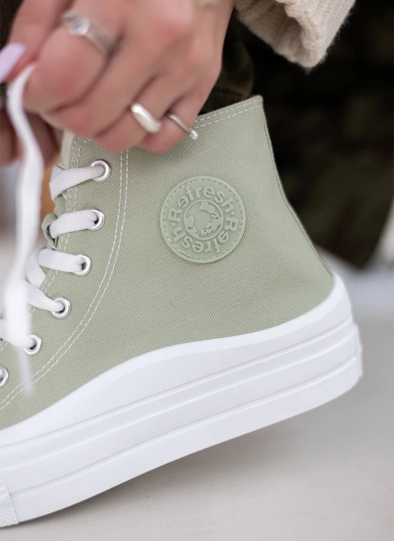 Sneakers μποτάκια πάνινα Refresh. Ψηλή σόλα. Διακριτικό λογότυπο στο πλάι. Έχουν φερμουάρ στην εσωτερική τους πλευρά. Peta vegan approved.