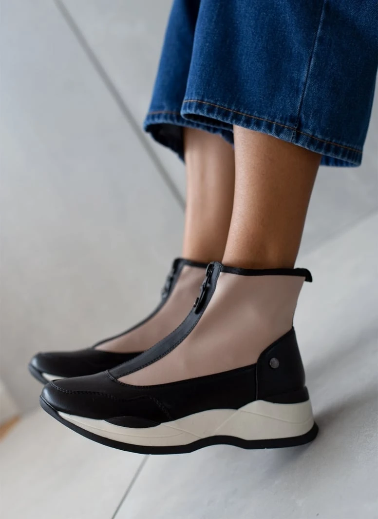Sneakers μποτάκια XTI με chunky σόλα. Κλείνουν με φερμουάρ στη μπροστινή πλευρά. Συνδυάζουν ύφασμα και τεχνόδερμα.